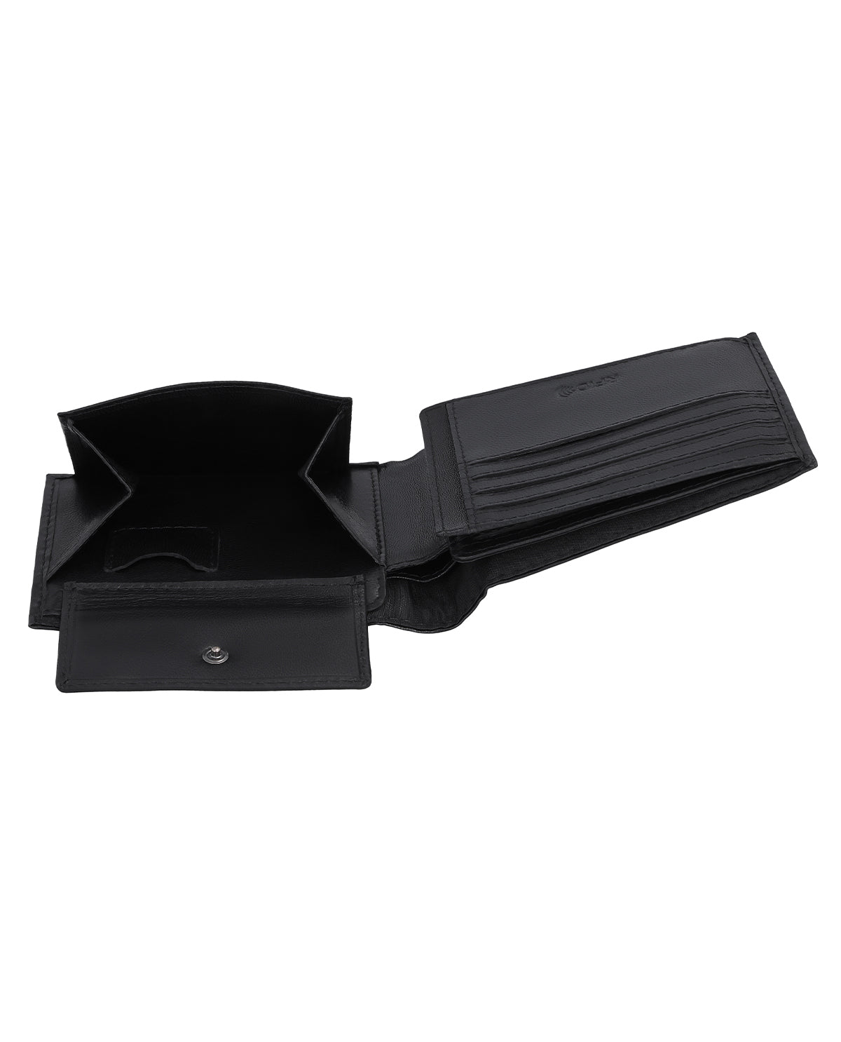 Wewnątrz portfel przekonuje bardzo dobrze zorganizowanym systemem porządkowania, składającym się z dwóch przegródek na banknoty, oddzielnej przegródki na monety, którą można otworzyć za pomocą zatrzasku, oraz łącznie 9 przegródek na (co najmniej) tyle samo kart. Szczególnie praktyczna jest oddzielna przegródka na jedną monetę – np. do wózka sklepowego. Dodatkowazintegrowana kieszonka z klapką rozszerza portfel o duże okienko, w którym można umieścić zdjęcia najbliższych.