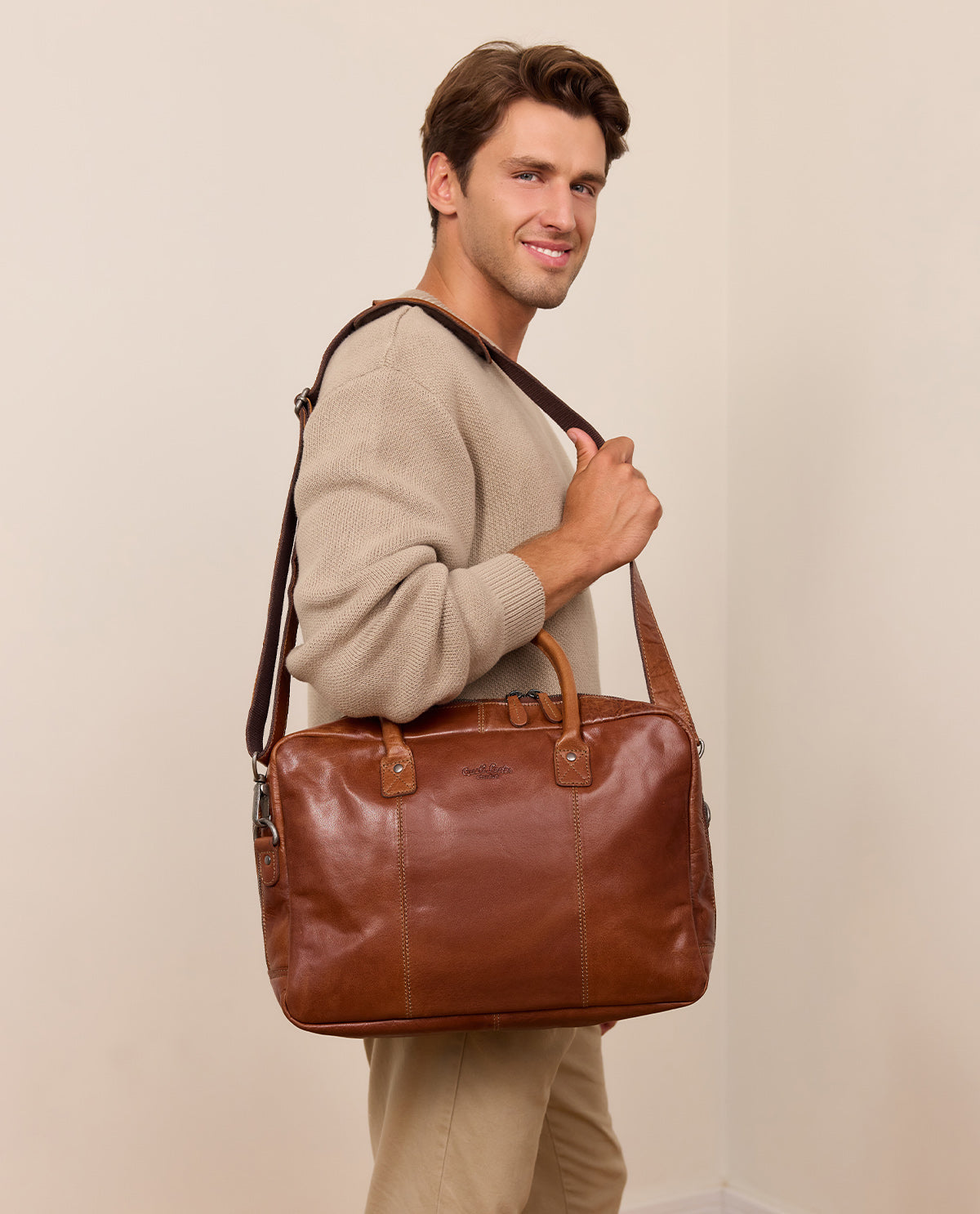 Nasza aktówka wykonana jest z najwyższej jakości skóry. Ten miękki, a jednocześnie wytrzymały materiał nadaje torbie elegancki, vintage'owy wygląd i zapewnia jej długotrwałość. Każda torba jest ręcznie wykonana i zachwyci Cię swoim wyjątkowym usłojeniem i kolorem. Ten ponadczasowy design jest idealnym dodatkiem w biurze, na spotkaniach czy w podróży służbowej.