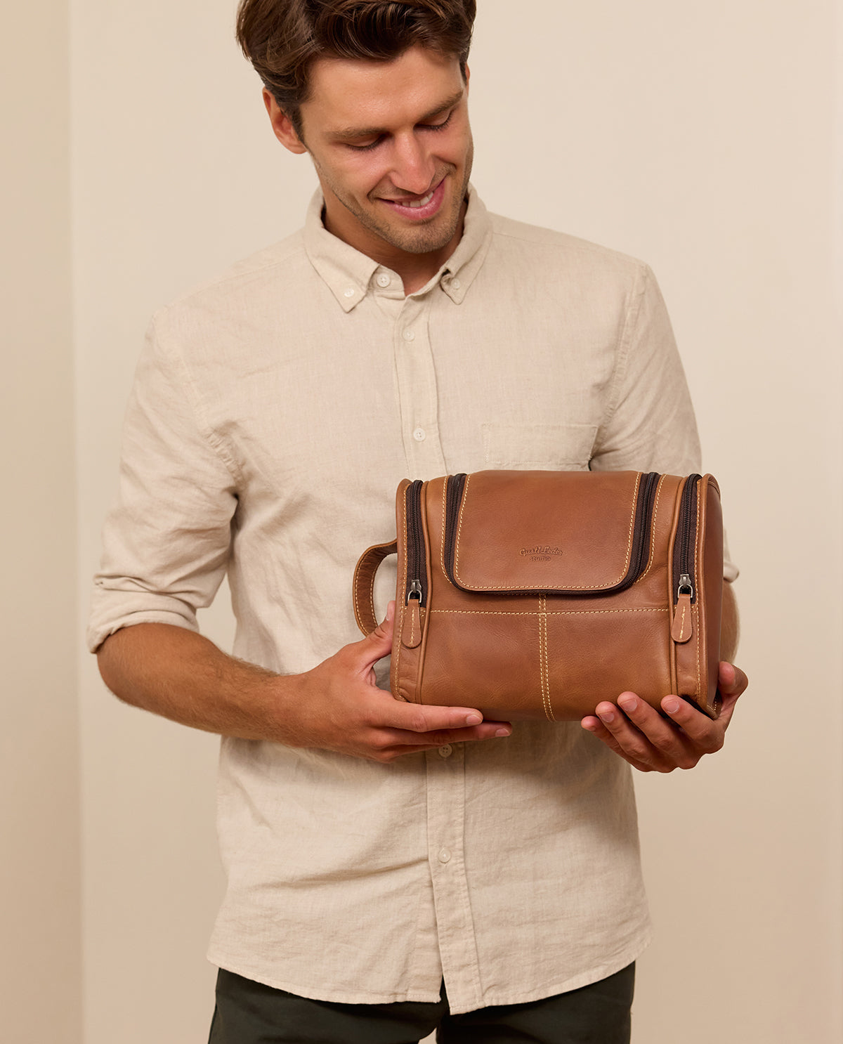 Praktyczna i elegancka - kosmetyczka "Chester" z brązowej skóry