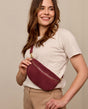 Saszetka nerka torebka crossbody damska brązowy skórzany - Made in Italy