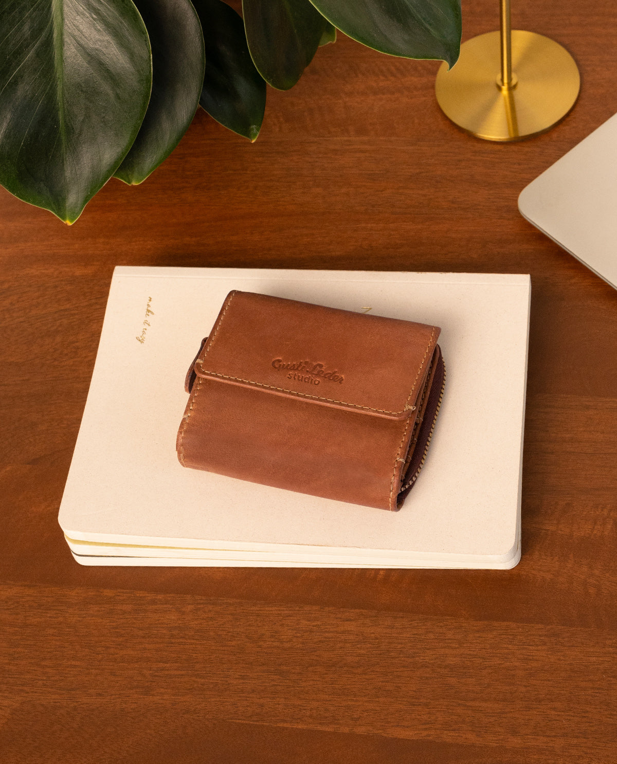 Wewnątrz „Brigitta” posiada przegródkę na banknoty, rozkładane okienko, miejsce na maksymalnie sześć kart oraz oddzielną przegródkę na monety z zamkiem błyskawicznym, która zapobiega niekontrolowanemu wypadaniu monet. Portfel, wykonany z wysokiej jakości skóry bawolej, jest bezpiecznie zamykany na zatrzask. Dzięki temu jesteś zawsze gotowy na nowy dzień. Zintegrowany bloker RFID w portfelu zakłóca sygnały czytników, chroniąc karty i zapewniając dodatkowe bezpieczeństwo.