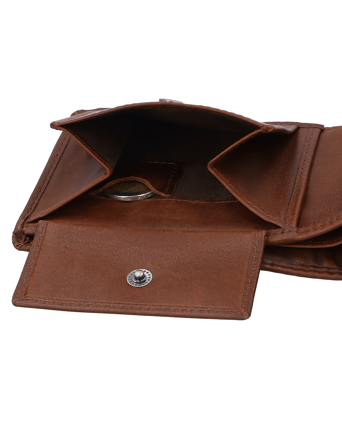 Wnętrze portfela zachwyca bardzo dobrze przemyślanym systemem organizacji, składającym się z dwóch przegródek na banknoty, osobnej przegródki na monety otwieranej przyciskiem oraz łącznie 11 przegródek i przegródek na co najmniej tyle samo kart. Wbudowana w portfel kieszeń na drobiazgi zapewnia mu duże okno, w którym z łatwością zmieszczą się dowody osobiste, prawa jazdy, a nawet zdjęcia bliskich osób. Kolejną zaletą jest rozmiar „Pawła”, ponieważ format ten idealnie nadaje się do przechowywania np. dokumentów pojazdu, bez ich składania i tym samym gięcia.