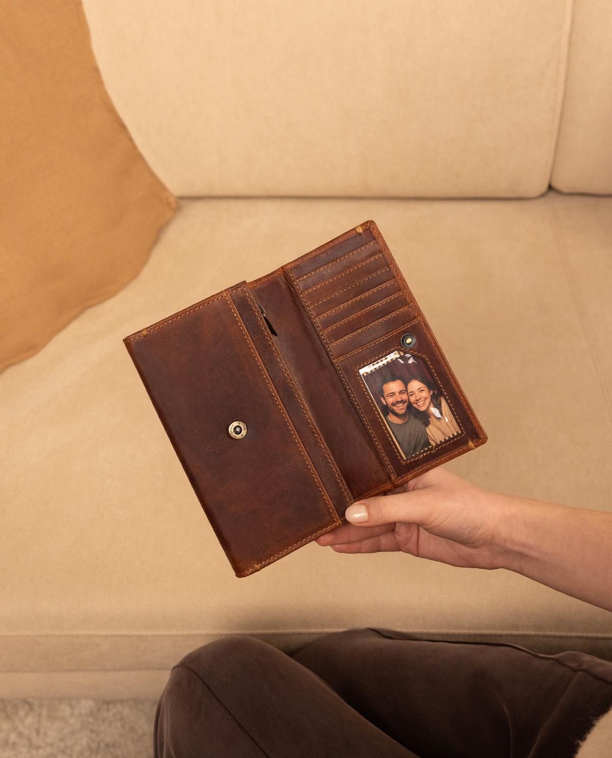 Odkryj nasz wysokiej jakości damski portfel "Angelique" z brązowej skóry – elegancki towarzysz, który doskonale łączy design i funkcjonalność. Zainspirowany miejskim berlińskim klimatem, jest idealny na co dzień, czy to na zakupach, w kawiarni czy w podróży. Prawdziwa, wytrzymała skóra zapewnia elegancki wygląd i przyjemną w dotyku fakturę, która z czasem staje się jeszcze piękniejsza. "Angelique" oznacza styl, jakość i organizację – wszystko, czego oczekujesz od nowoczesnego portfela.