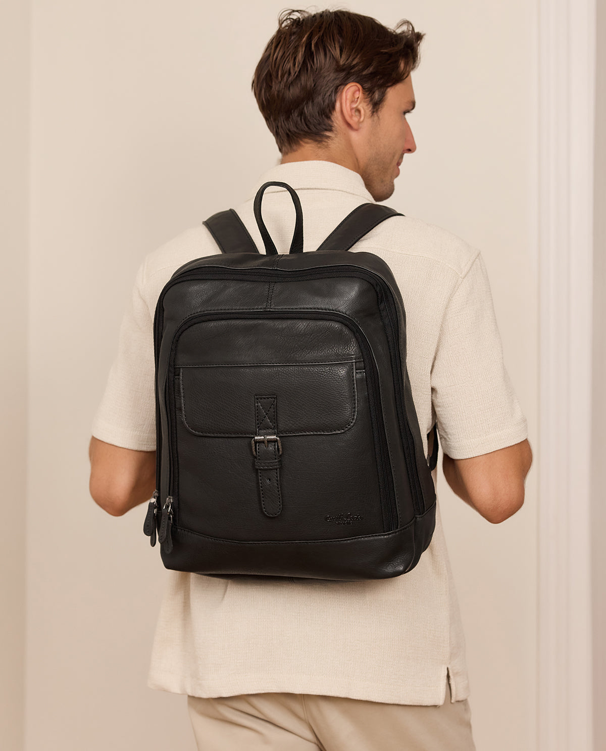 Niezależnie od tego, czy wybierasz się na siłownię, podróżujesz po świecie, jesteś w pracy czy w życiu codziennym, „Niki” Cię nie zawiedzie! Wytrzymała skóra bydlęca i wodoodporna tkanina wewnętrzna są w stanie wytrzymać każde warunki i sprawiają, że ten nowoczesny skórzany plecak jest praktycznym i modnym dodatkiem. Pięć różnej wielkości przegródek wewnętrznych oferuje miejsce na wszystko, czego potrzebujesz w podróży, czy to buty trekkingowe i butelkę z wodą, czy też dokument A4 i 15,6-calowy laptop. Wszystko jest bezpiecznie schowane w różnych przegródkach i nie będzie latać. Dwie dodatkowe kieszenie zapinane na zamek błyskawiczny również bezpiecznie przechowują wartościowe przedmioty, więc nic się nie zgubi. Szerokie paski zapewniają wygodne dopasowanie i oczywiście są regulowane pod względem długości. A ponieważ Gusti Leder ceni coś więcej niż tylko funkcjonalność, stylowy, zabytkowy design „Niki” jest nie do pobicia!