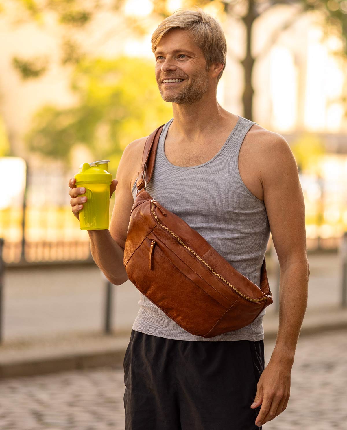 Ta pojemna torba wykonana z wytrzymałej skóry bydlęcej w formacie dużej nerki łączy w sobie wszystkie zalety kompaktowego plecaka z absolutnie modnym, swobodnym i modnym stylem nerki - nie w ostatniej kolejności dzięki przyjemnie miękkiej fakturze skóry i eleganckim srebrnym zamkom. W ten sposób „Esben” może Ci towarzyszyć wszędzie, nie musisz więc rezygnować ze swoich ulubionych rzeczy ani z atrakcyjnego wyglądu. W końcu „Esben” zawsze oferuje wystarczająco dużo miejsca na smartfona, klucze i portfel, kalendarz kieszonkowy, piórnik i wiele więcej !