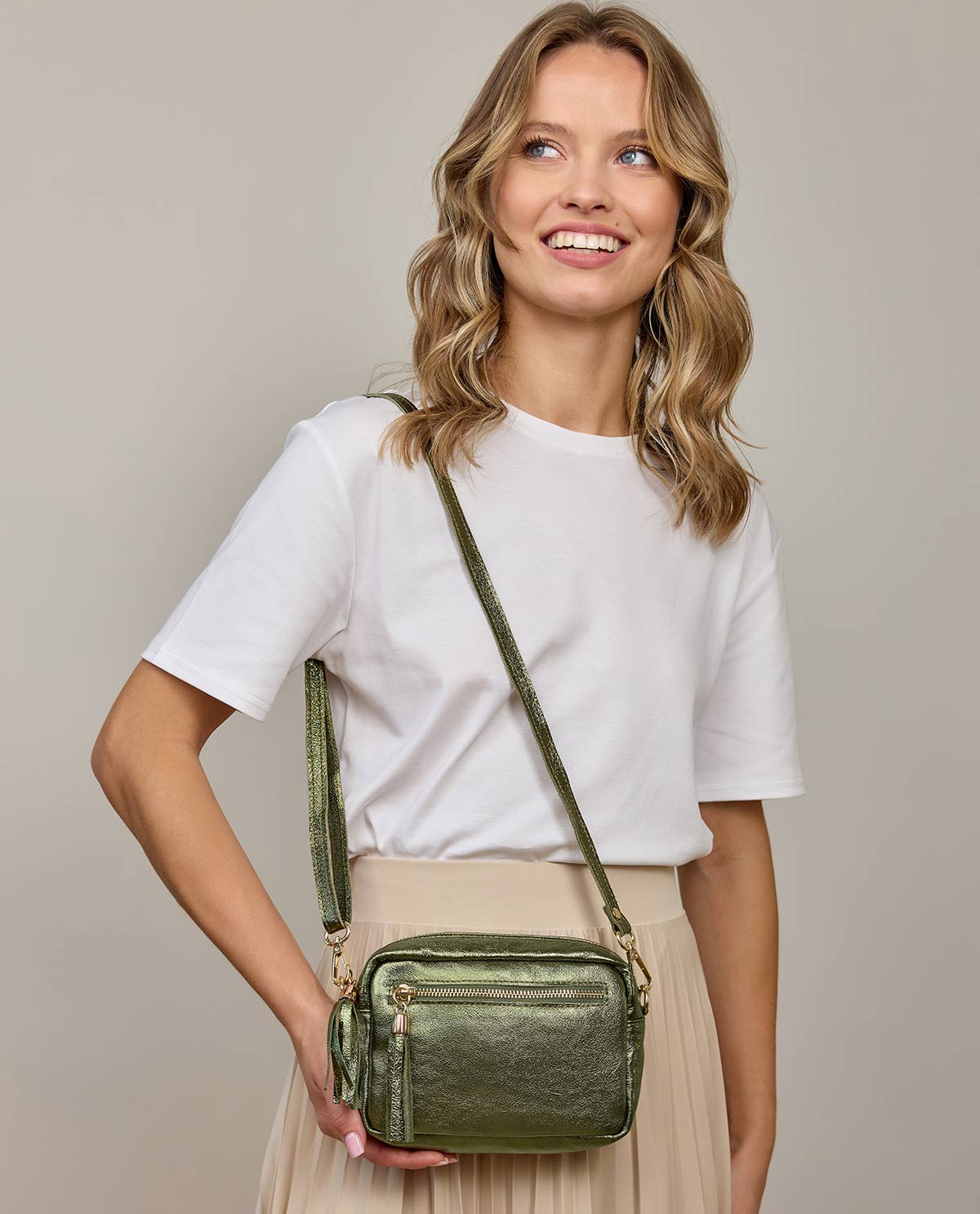 Saszetka Nerka Torebka Crossbody Damska Zielony Lakierowany Skórzany - Made in Italy