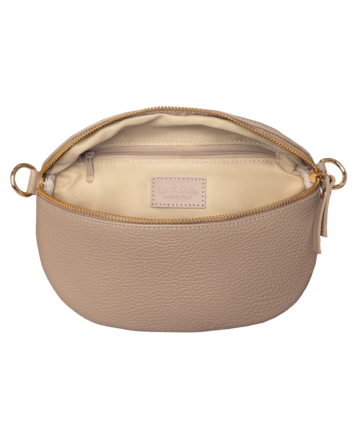 Torebka na ramię "Brinja" zachwyca eleganckim designem i wysoką funkcjonalnością. Dzięki charakterystycznej, półokrągłej sylwetce i pełnemu zamkowi błyskawicznemu wzdłuż górnej krawędzi oferuje nie tylko wystarczająco dużo miejsca na Twoje niezbędne rzeczy, ale także bezpieczeństwo dla wszystkich Twoich osobistych przedmiotów. Wysokiej jakości skóra nadaje jej elegancki wygląd, który doskonale wpisuje się w Twój nowoczesny dzień. Wewnątrz znajdziesz również delikatnie wytłoczone logo "Made in Italy", które imponująco podkreśla pochodzenie i jakość tej torby.