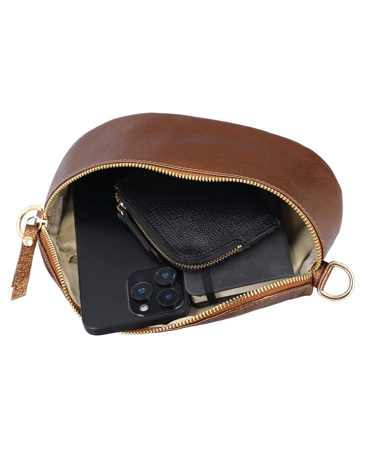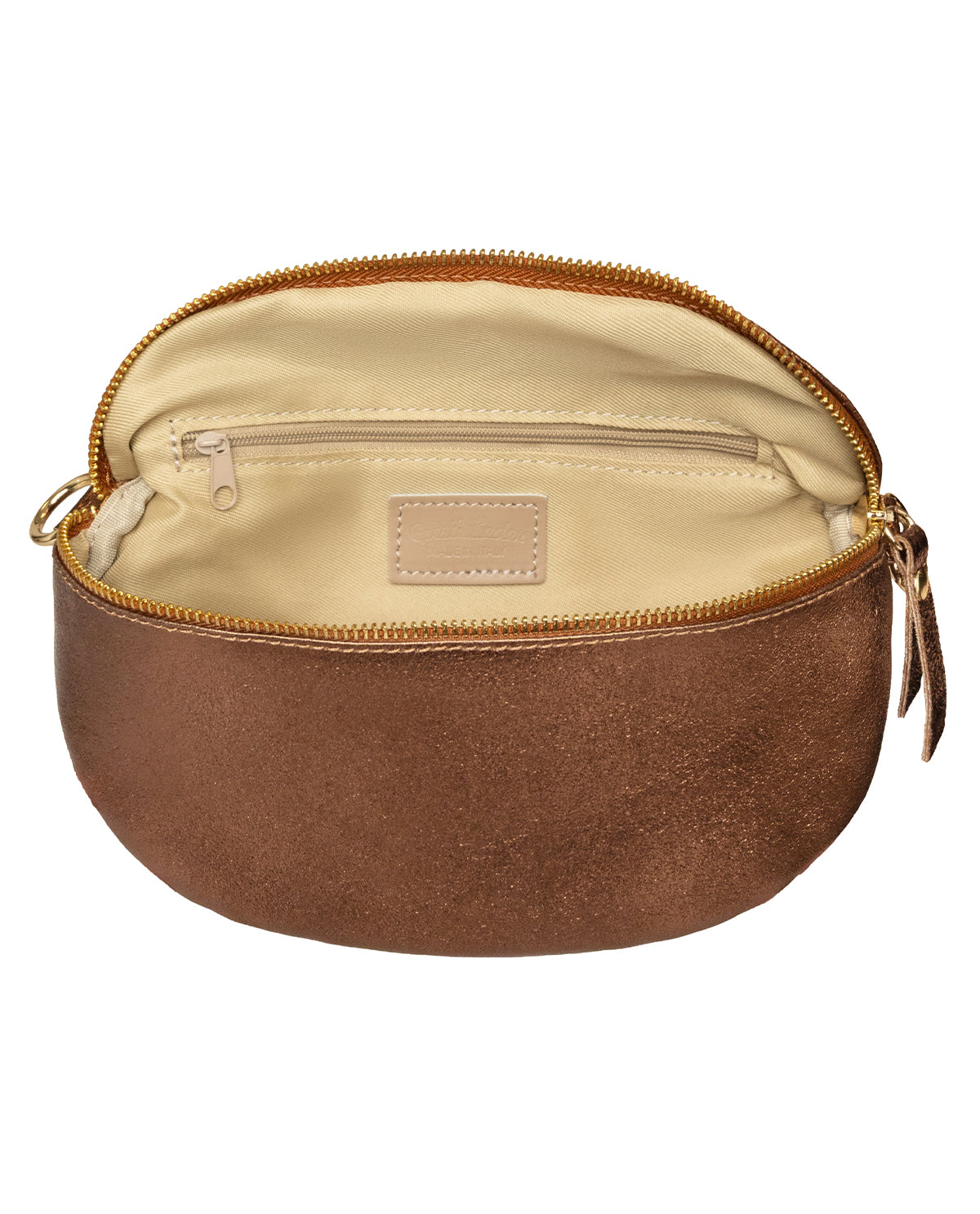 Torba na ramię "Brinja" zachwyca eleganckim designem i wysoką funkcjonalnością. Dzięki charakterystycznej, półokrągłej sylwetce i pełnemu zamkowi błyskawicznemu wzdłuż górnej krawędzi, oferuje nie tylko wystarczająco dużo miejsca na Twoje niezbędne rzeczy, ale także bezpieczeństwo dla wszystkich Twoich osobistych przedmiotów. Wysokiej jakości skóra nadaje jej elegancki wygląd, który doskonale wpisuje się w Twój nowoczesny styl życia. Wewnątrz znajdziesz także delikatnie wytłoczone logo "Made in Italy", które imponująco podkreśla pochodzenie i jakość tej torby.