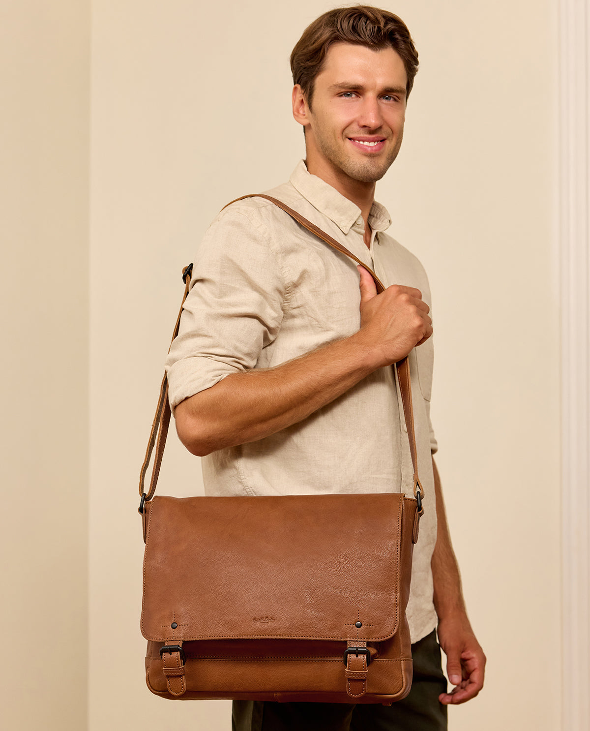 Teczka torba biznesowa torba na laptopa z paskiem brązowa skóra