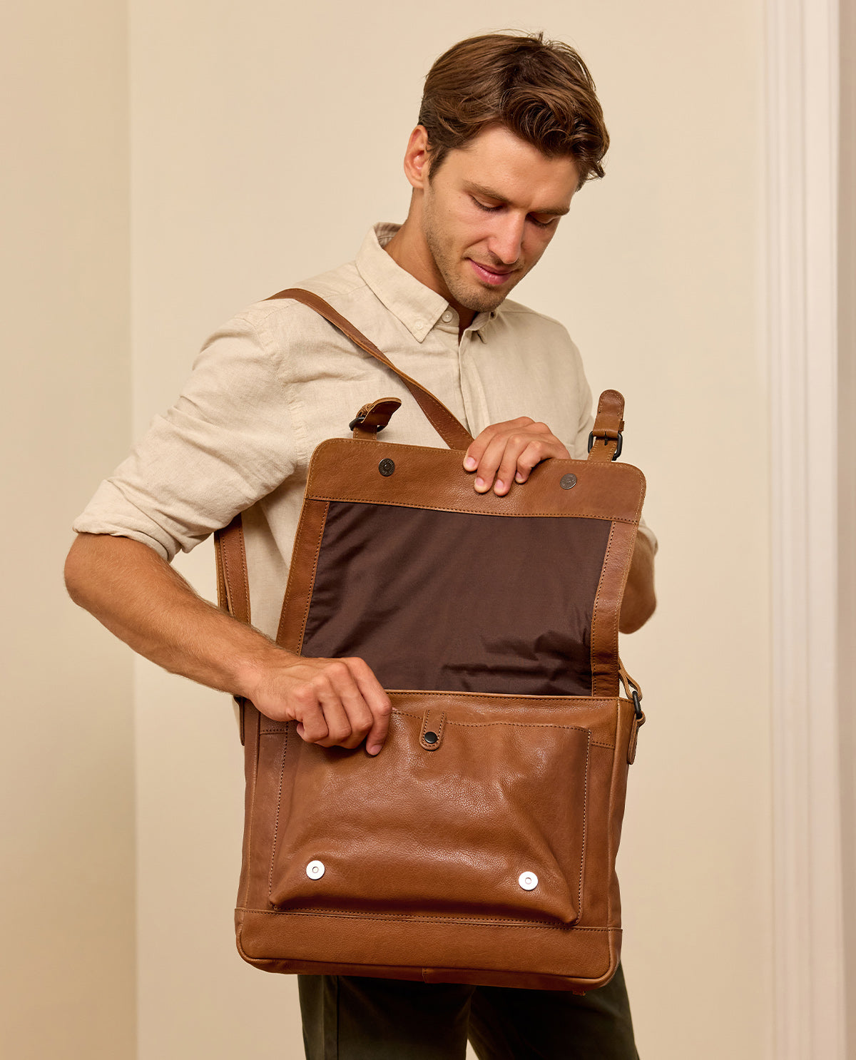 Teczka na laptopa "Attila" wykonana z wysokiej jakości skóry to idealny towarzysz na co dzień w pracy. Łączy nowoczesny design z przemyślaną funkcjonalnością, aby bezpiecznie i stylowo transportować Twoje cenne urządzenia. Dzięki wyściełanej przegrodzie na laptopa, która jest optymalnie chroniona skórzanym paskiem i zapięciem na rzep, Twój laptop jest zawsze bezpiecznie przechowywany. Dodatkowo praktyczny pasek na klucze w głównej przegrodzie zapewnia, że klucze są zawsze pod ręką. Dzięki solidnemu materiałowi i starannemu wykonaniu ta torba jest zarówno trwała, jak i elegancka.
