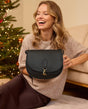 Torebki skórzane na ramię złote dodatki czarna skóra