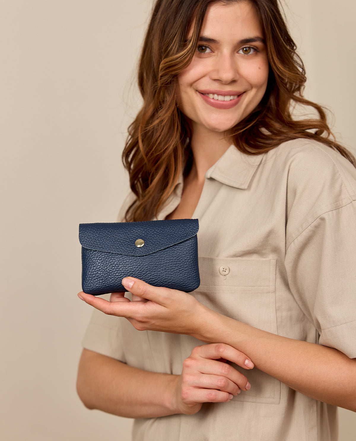 Die "Anela" Aufbewahrungstasche ist mehr als nur ein Accessoire – sie ist die perfekte Kombination aus stilvollem Design und praktischer Funktion. Ihre elegante Umschlagklappe mit magnetischem Verschluss sorgt dafür, dass Deine wichtigsten Utensilien sicher und gleichzeitig schnell zugänglich sind. Aus hochwertigem Leder gefertigt, verkörpert sie die Kunstfertigkeit italienischer Handwerkskunst und besticht durch ihre edle Optik und Haltbarkeit. Diese Tasche fügt sich nahtlos in Deinen Alltag ein und verleiht Deinem Look eine raffinierte Note.