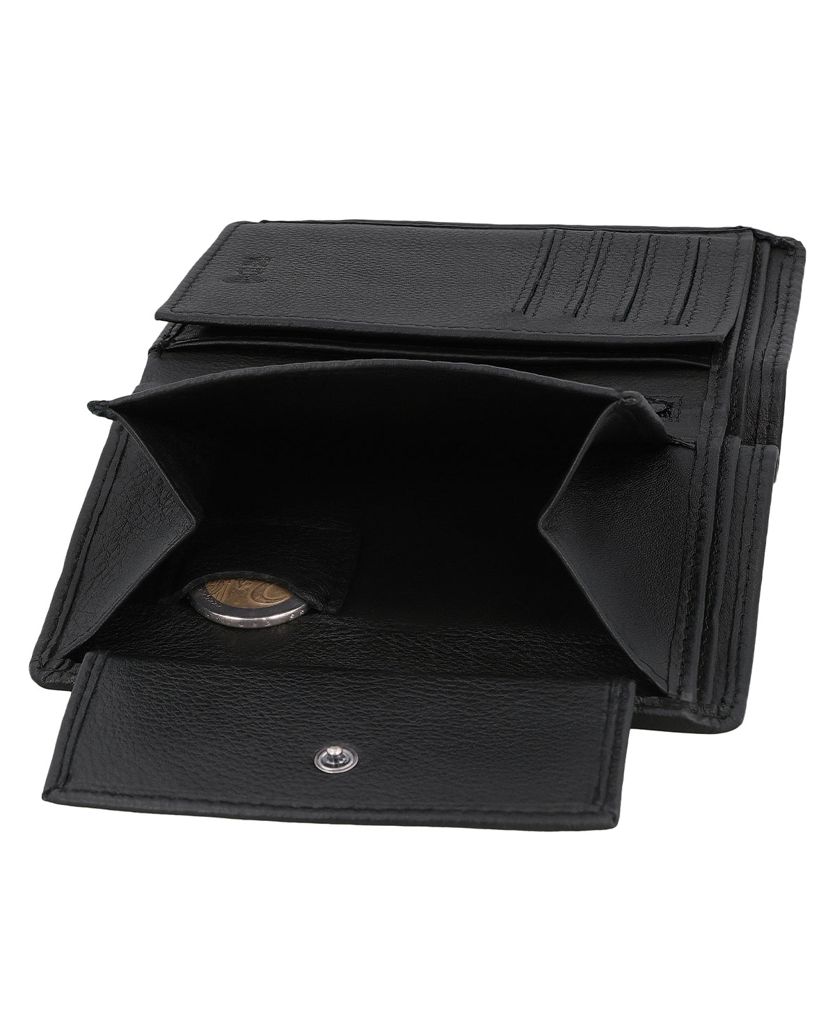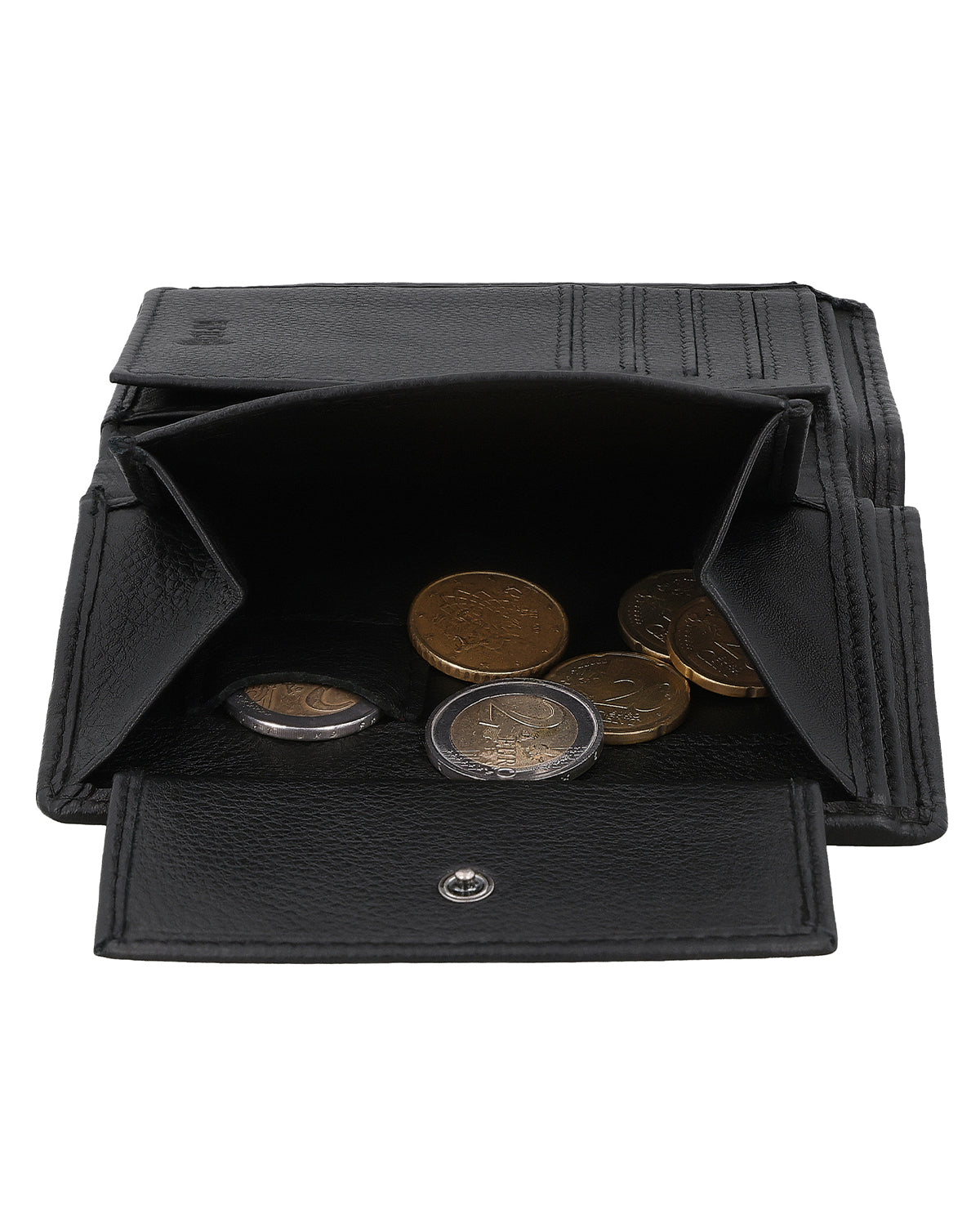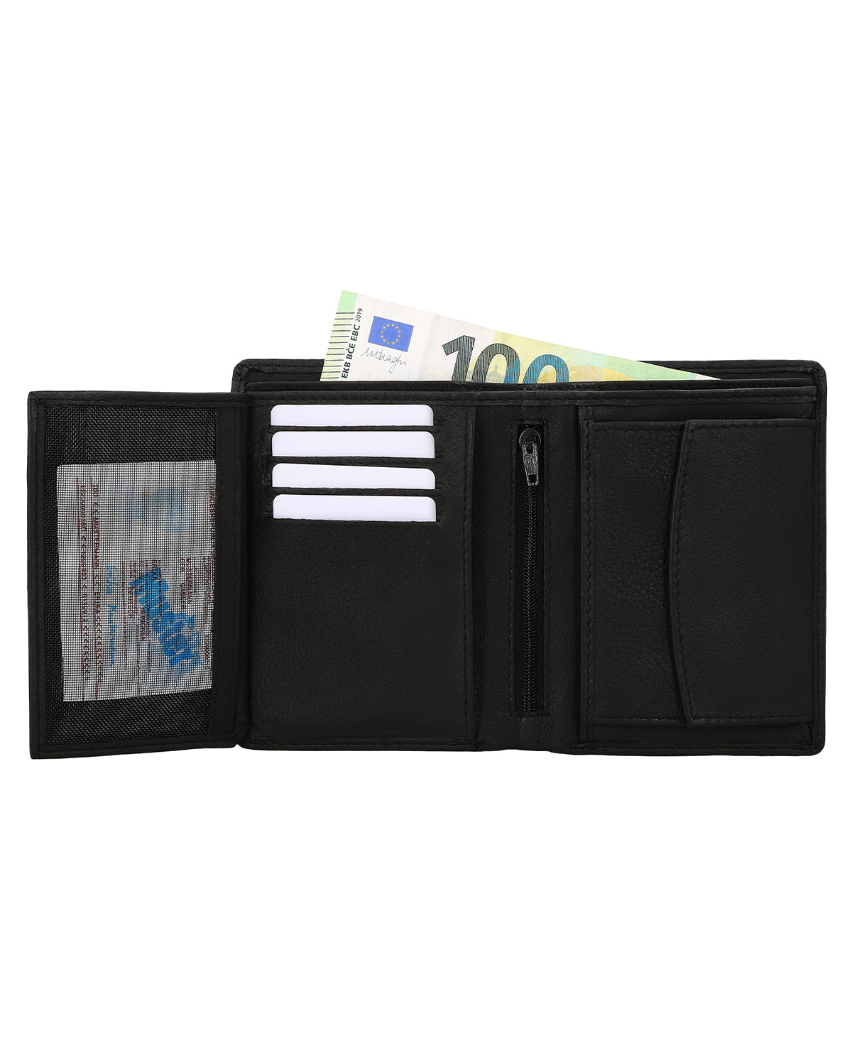Im Inneren überrascht die Lederbörse dann trotz ihrer kompakten Form mit einer geräumigen und sehr übersichtlich strukturierten Aufteilung bestehend aus zwei Geldscheinfächern, einem separaten Münzfach, das über einen Druckknopf geöffnet werden kann, sowie 8 Steckfächern für (mindestens) ebenso viele Karten. Zusätzlich gibt es ein extra Münzfach für genau eine einzelne Münze – ideal, wenn du z.B. zum schnellen Entsichern eines Einkaufswagens sofort die passende Münze griffbereit haben möchtest. Ein zusätzlich integriertes Flipfach erweitert die Börse noch um ein großes Sichtfenster, in dem problemlos Ausweis, Führerschein oder auch Fotos von den Liebsten untergebracht werden können. Ein weiteres "Nice-to-have" ist das kleine Reißverschlussfach, in dem ganz besondere Wertsachen verstaut werden können, sowie die zwei seitlichen Einsteckfächer hinter den Münz-und Kartenfächern.