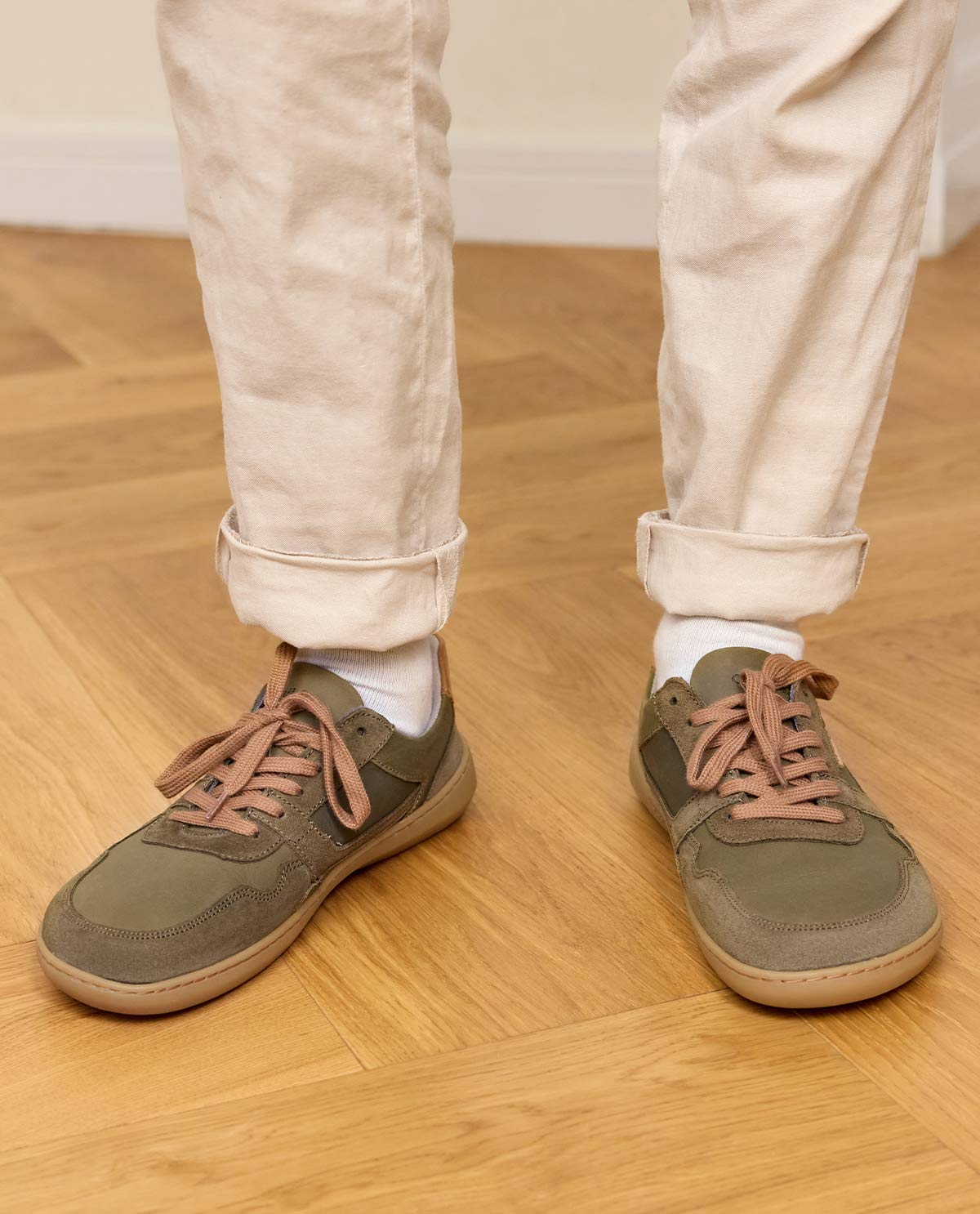 Schuhe Barfußschuhe Lederschuhe Sneaker Herren Grün Leder