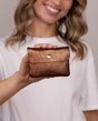 Aufbewahrungstasche Geldbörse Portemonnaie Geldbeutel Organizer klein Ledertasche Damen Braun Glänzend Leder - Made in Italy