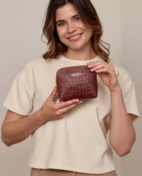Mit ihren drei Reißverschlussfächern sorgt "Veha" für perfekte Organisation und Übersicht – ideal, um Smartphone, Schlüssel, Portemonnaie oder Kosmetik sicher und getrennt voneinander zu verstauen. Die zwei zusätzlichen Vordertaschen ermöglichen Dir schnellen Zugriff auf Dinge, die Du griffbereit halten möchtest. Das klare, rechteckige Design sorgt für eine moderne Silhouette, während der warme Braunton der Tasche jedem Outfit eine elegante Note verleiht. Mit "Veha" bist Du für Alltag, Reisen oder Stadtbummel stilvoll und organisiert unterwegs.