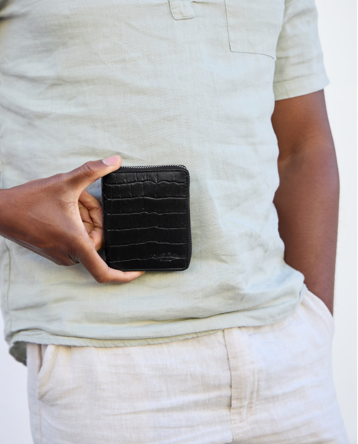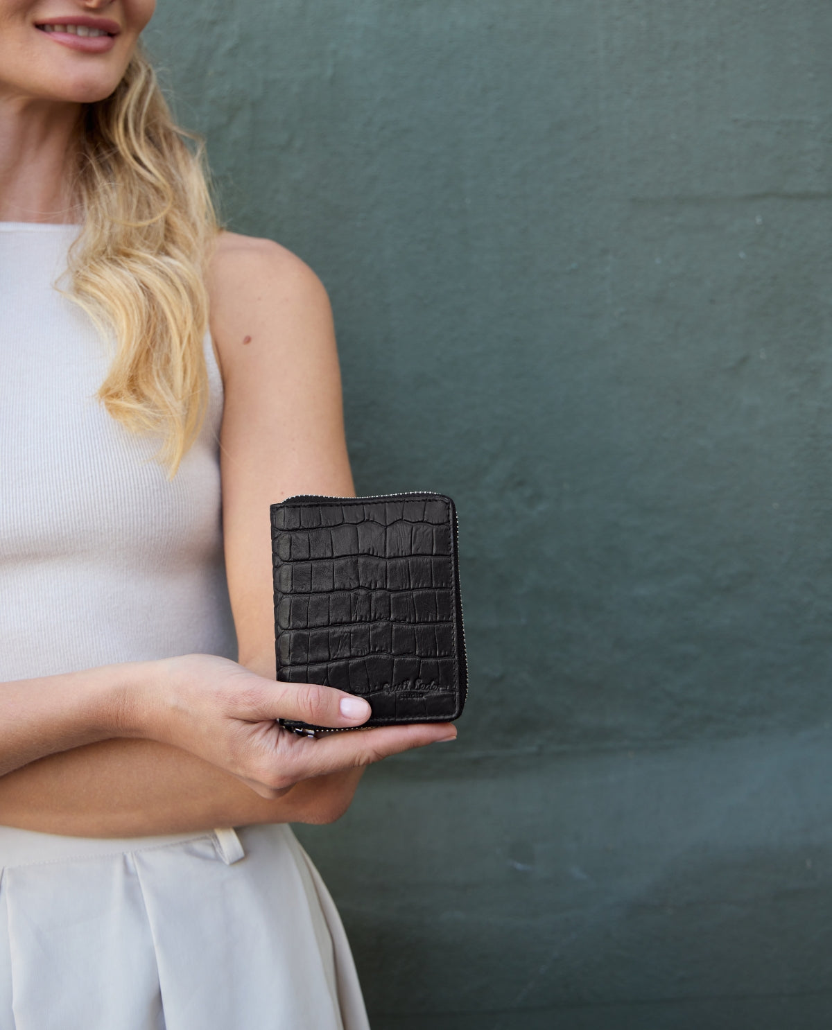 Du suchst ein kleinem Portmonnaie, welches aber genug Platz für deine Scheine,Karten und Münzen hat? Eine agile Geldbörse, die in jede noch so kleine Tasche, Rucksack oder Bauchtasche passt? Aus hochwertig gegerbtem Rindsleder bietet "Melli" dir genau das und besticht auch noch durch ihren trendy Kroko Design. Funktionsvielfalt und en vogue!