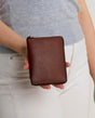 Im Inneren überzeugt "Darian" derweil mit einem umfangreichen System aus einem Geldscheinfach, einem separaten Münzfach, das über einen Druckknopf geöffnet werden kann nebem dem sich eines der insgesamt drei tiefen Steckfächer verbirgt. Aus hochwertig gegerbtem Rindsleder besticht "Darian" durch eine überaus angenehme Haptik sowie Form und Stabilität. Abgerundet wird das Design von "Darian" durch einen Reißverschluss rundherum. So kann wirklich nichts mehr herauspurzeln.