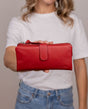 Geldbörse Portemonnaie Geldbeutel Kartenetui Vintage Damen extra Münzfach Rot Leder