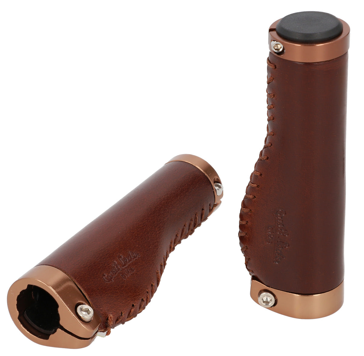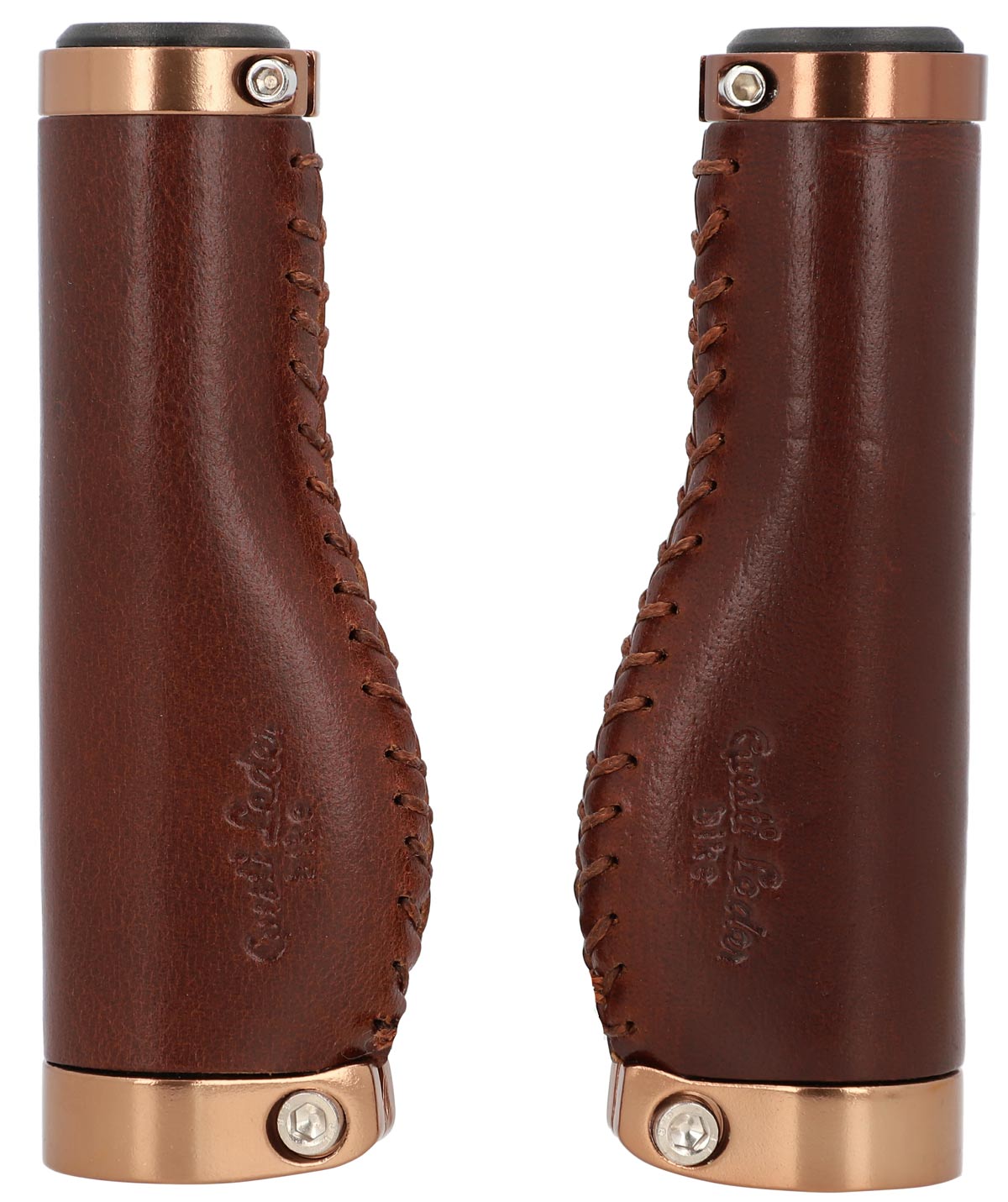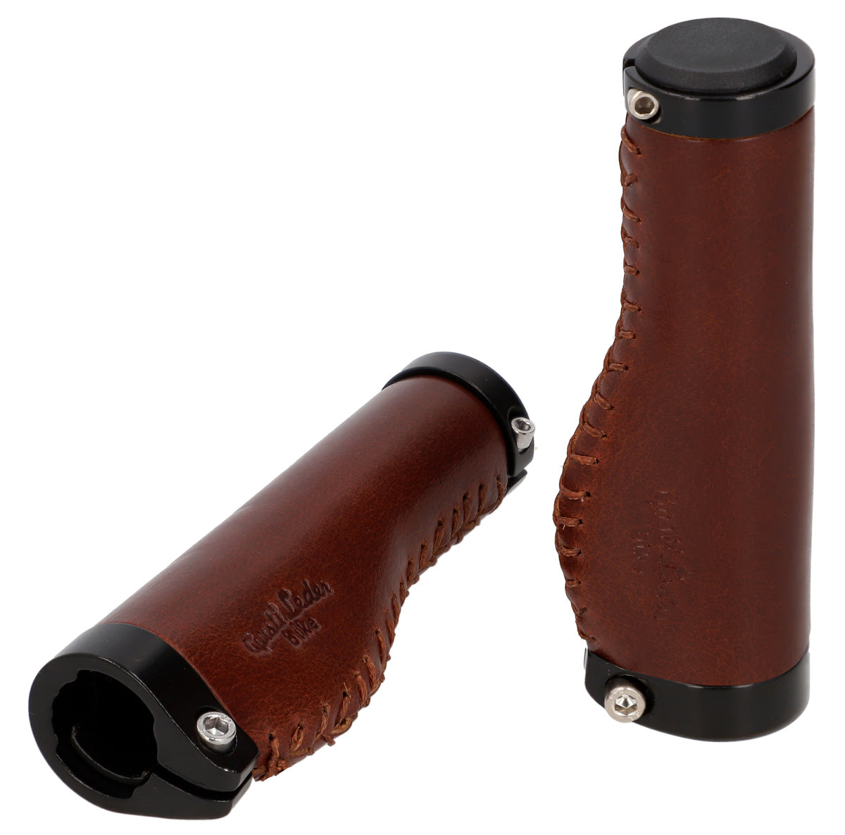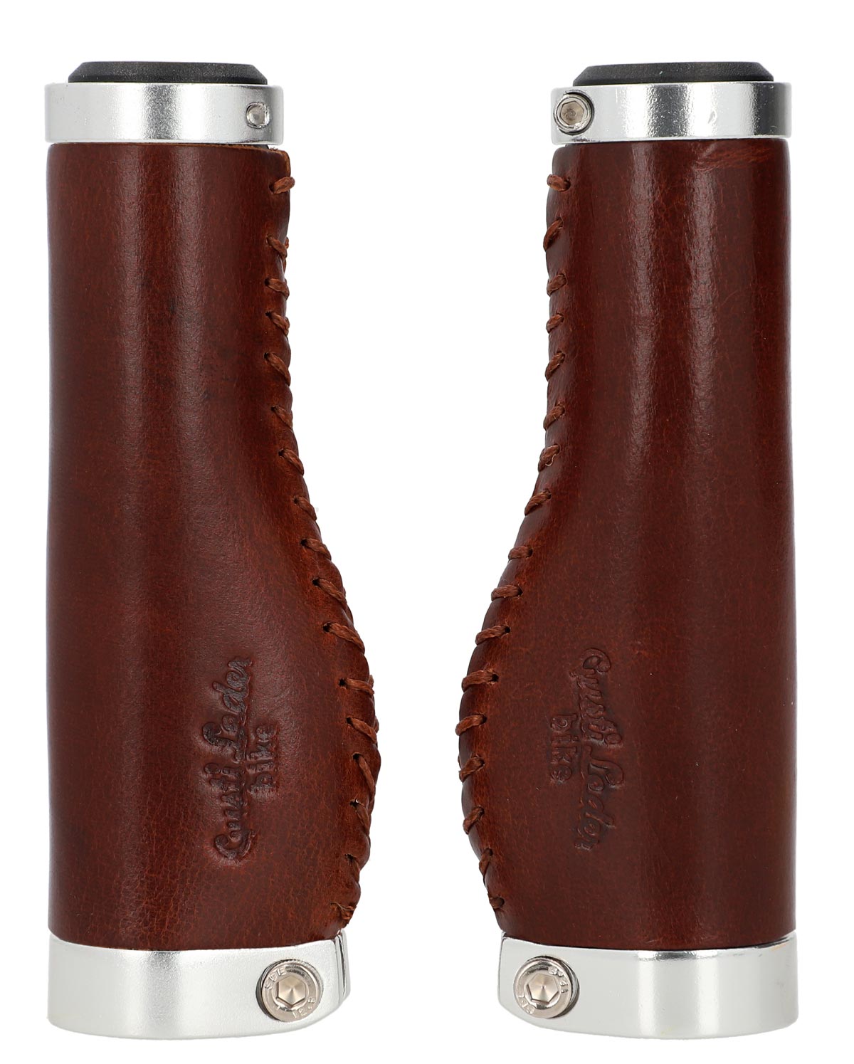 Die ledernen Lenkergriffe "Phil A." passen optisch ebenso hervorragend zu einem trendigen Single-Speed-Rad wie zum klassischen Holland-Bike und lassen sich kinderleicht montieren. Ihr hochwertiges Materialmix aus farbigem Aluminium und 100% Echtleder sorgt für hervorragenden Grip und ein konstant gutes Lenkverhalten. Gleichzeitig passen sie sich ideal der Anatomie Deiner Hände an, federn Stöße und Vibrationen ab und erhöhen so die Griffsicherheit. Nach einer kurzen Einfahrzeit wirst Du den spürbaren Komfort und die angenehme Haptik dieser Griffe nicht mehr missen wollen.