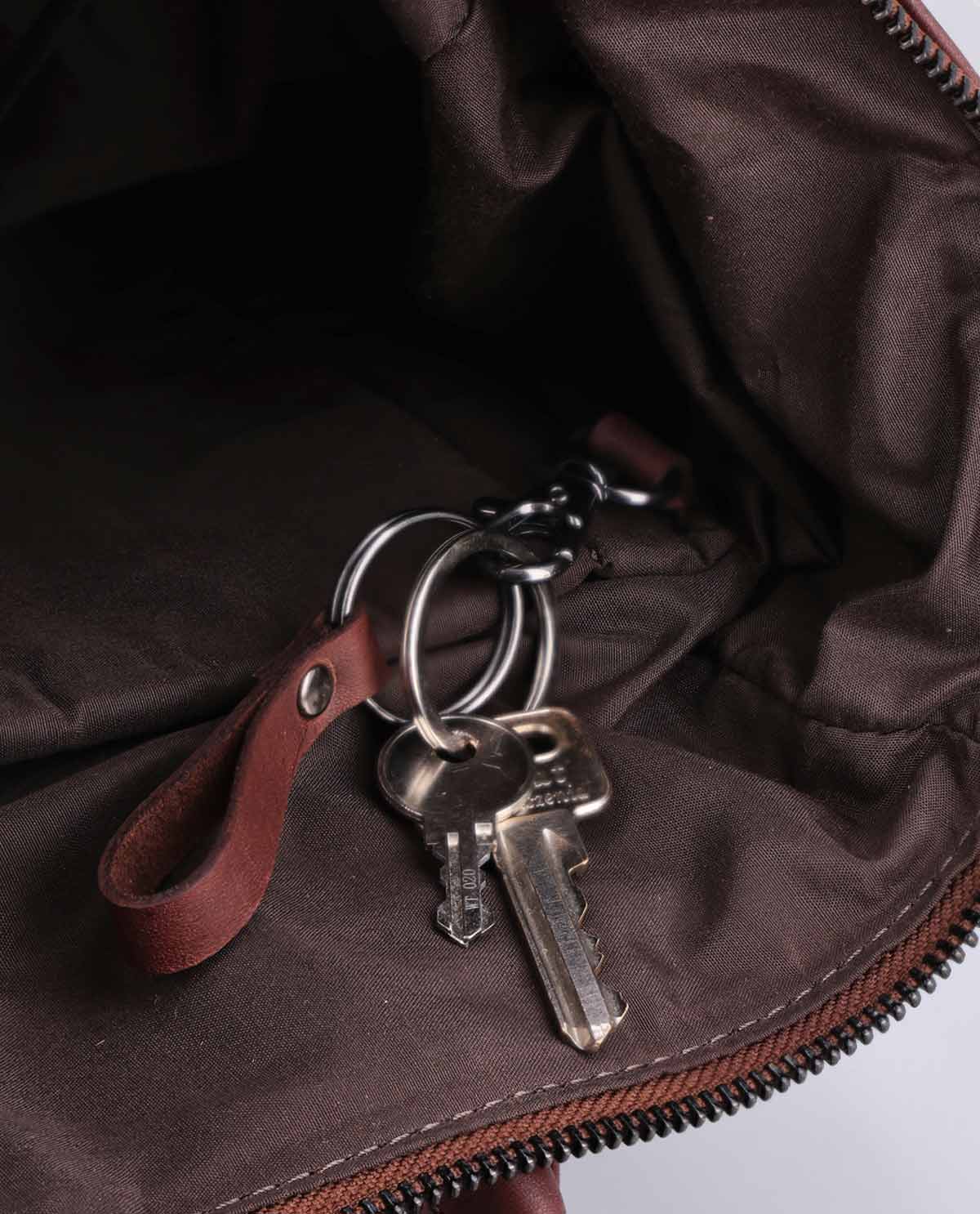 Laptopfach, Fach für Wertsachen, Metallring mit Lederband für den Schlüssel