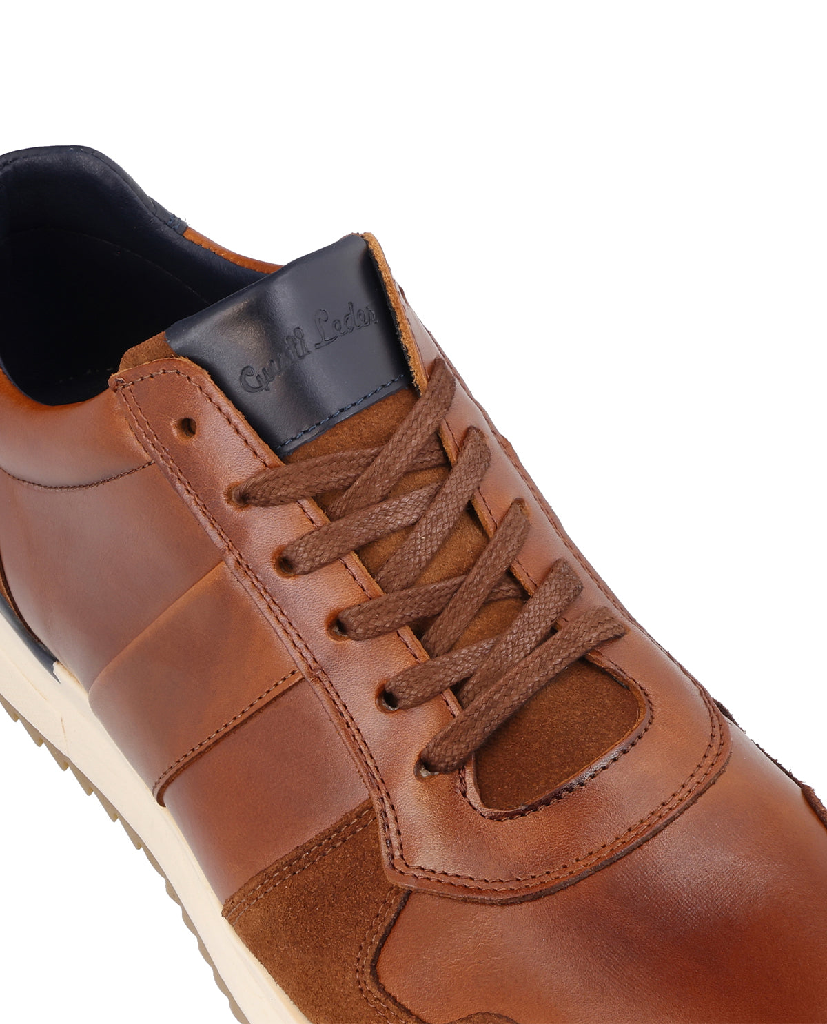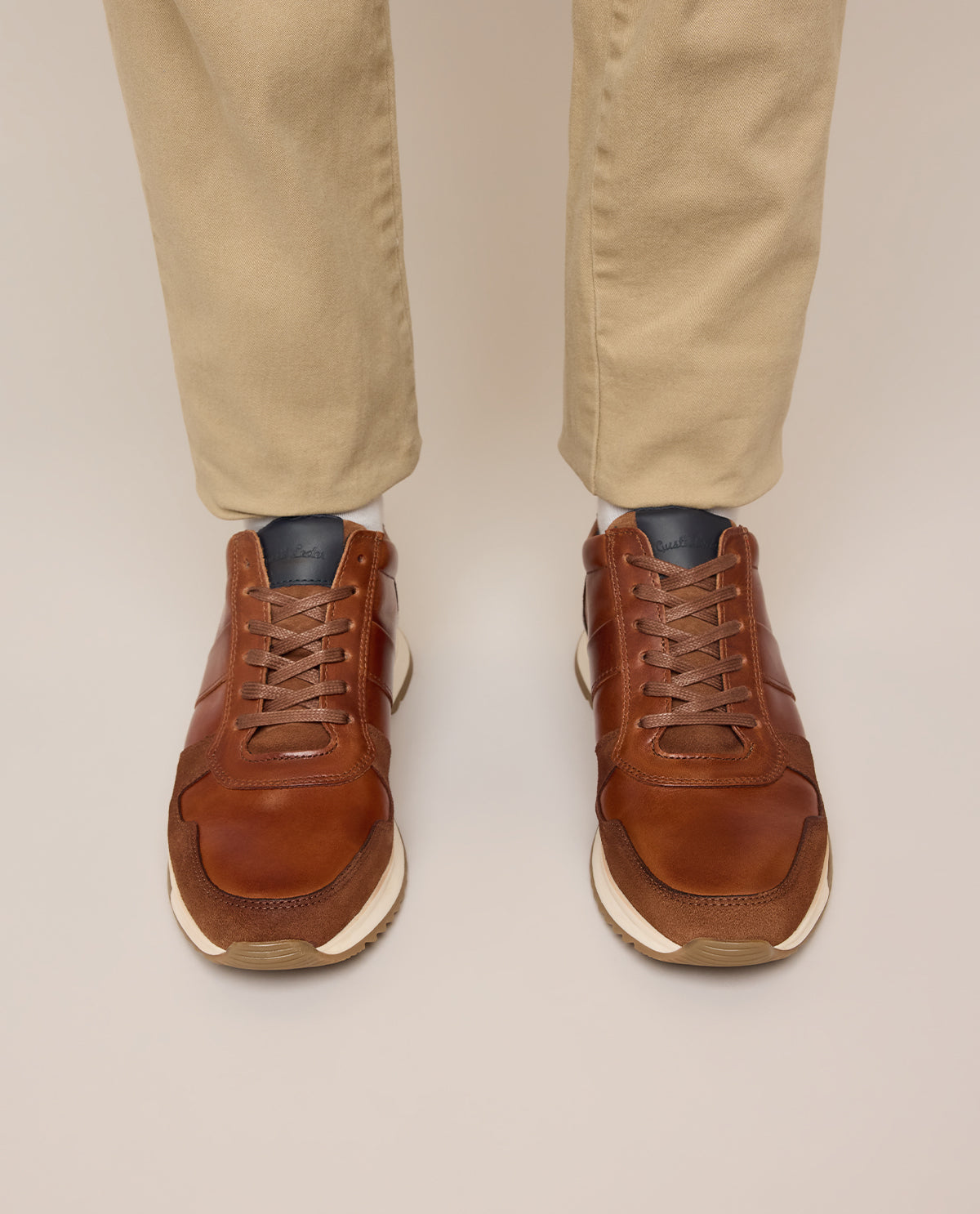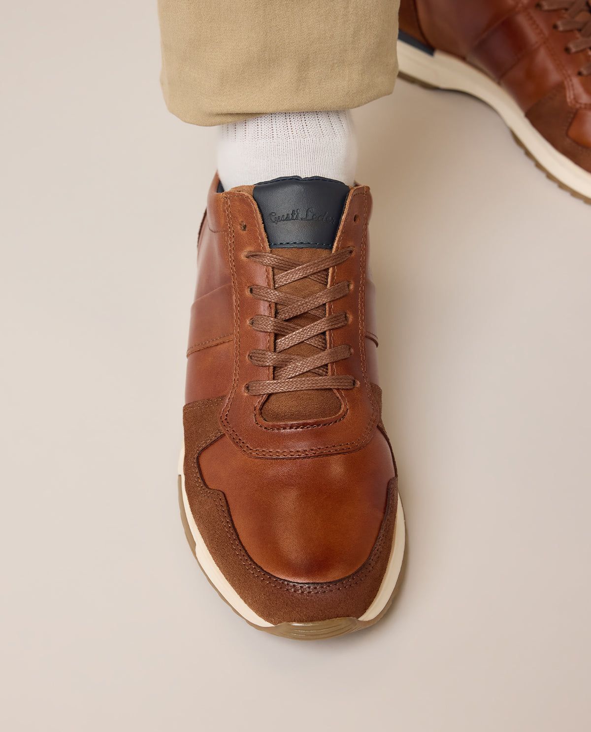 Mit "Ennio" trägst Du Schuhe, die mühelos den Spagat zwischen lässigem Alltag und stilvollem Auftritt schaffen. Das durchdachte Design kombiniert glattes Leder mit samtigen Wildleder-Elementen und sorgt so für eine raffinierte, moderne Optik. Die mehrteilige Konstruktion mit sichtbaren Nähten unterstreicht den handwerklichen Charakter und garantiert zugleich Langlebigkeit. Die abgerundete Schuhspitze mit einer doppelten Lederschicht aus Glattleder und Wildleder sorgt für Stabilität und optische Tiefe, während die flachen, breiten Baumwollschnürsenkel in Braun einen stilvollen Akzent setzen. Der Lederüberzug auf der Zunge mit eingeprägtem Logo verleiht "Ennio" ein hochwertiges Finish.