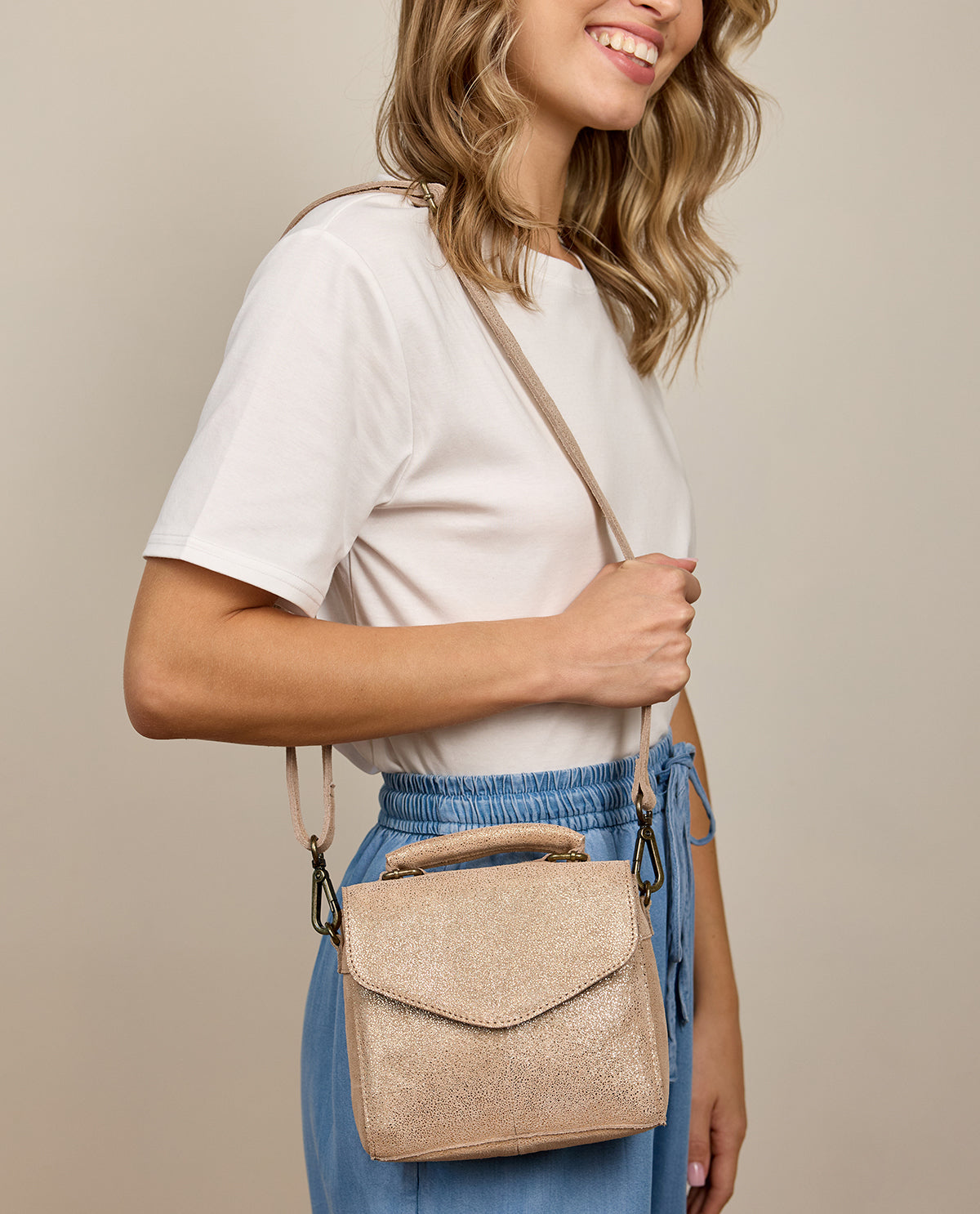 Umhängetasche Ledertasche Handtasche Schultertasche Partytasche Abendtasche Gold Leder
