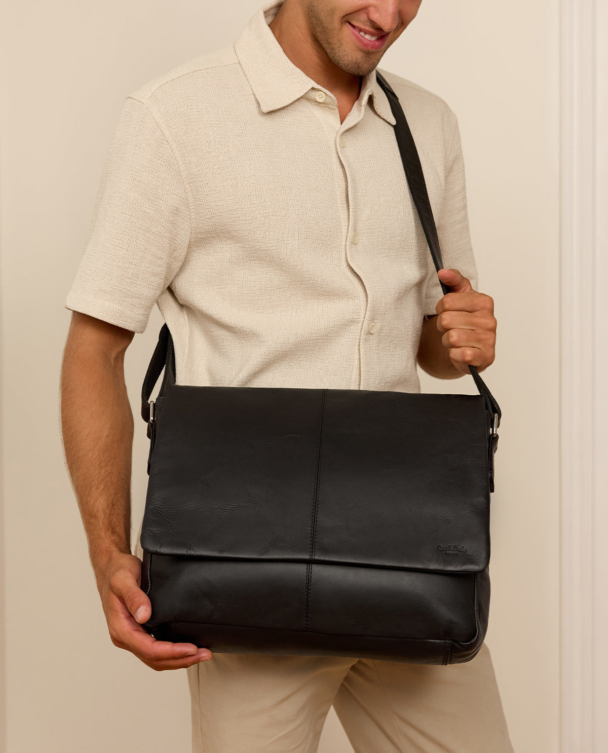 Schlicht, stilvoll und zeitlos – die Umhängetasche „Reign“ überzeugt mit ihrem klassischen Design und hochwertigem schwarzem Leder. Sie ist der perfekte Begleiter für den Alltag, ob im Büro, auf Reisen oder in der Freizeit. Die Kombination aus robustem Material und durchdachtem Design macht diese Ledertasche zu einem Must-have für stilbewusste Herren.