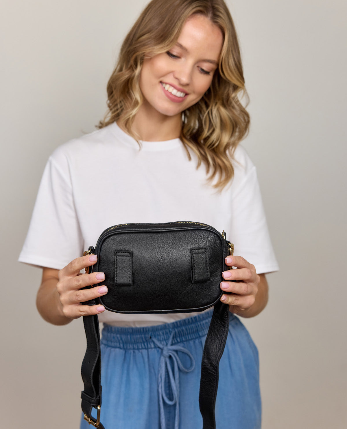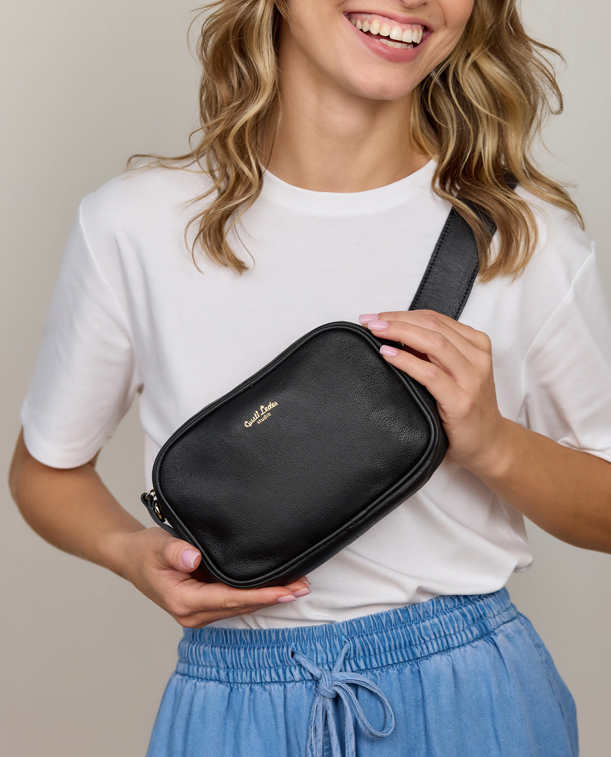 If you're looking for a compact, modern bag you can use every day, then you're in the right place. Our “Sofia” effortlessly combines a modern, youthful design with functionality. She's a practical companion that adds a finishing touch to any outfit. But that's not all... You can wear “Sofia” as a shoulder bag or loop her onto your belt for festivals.