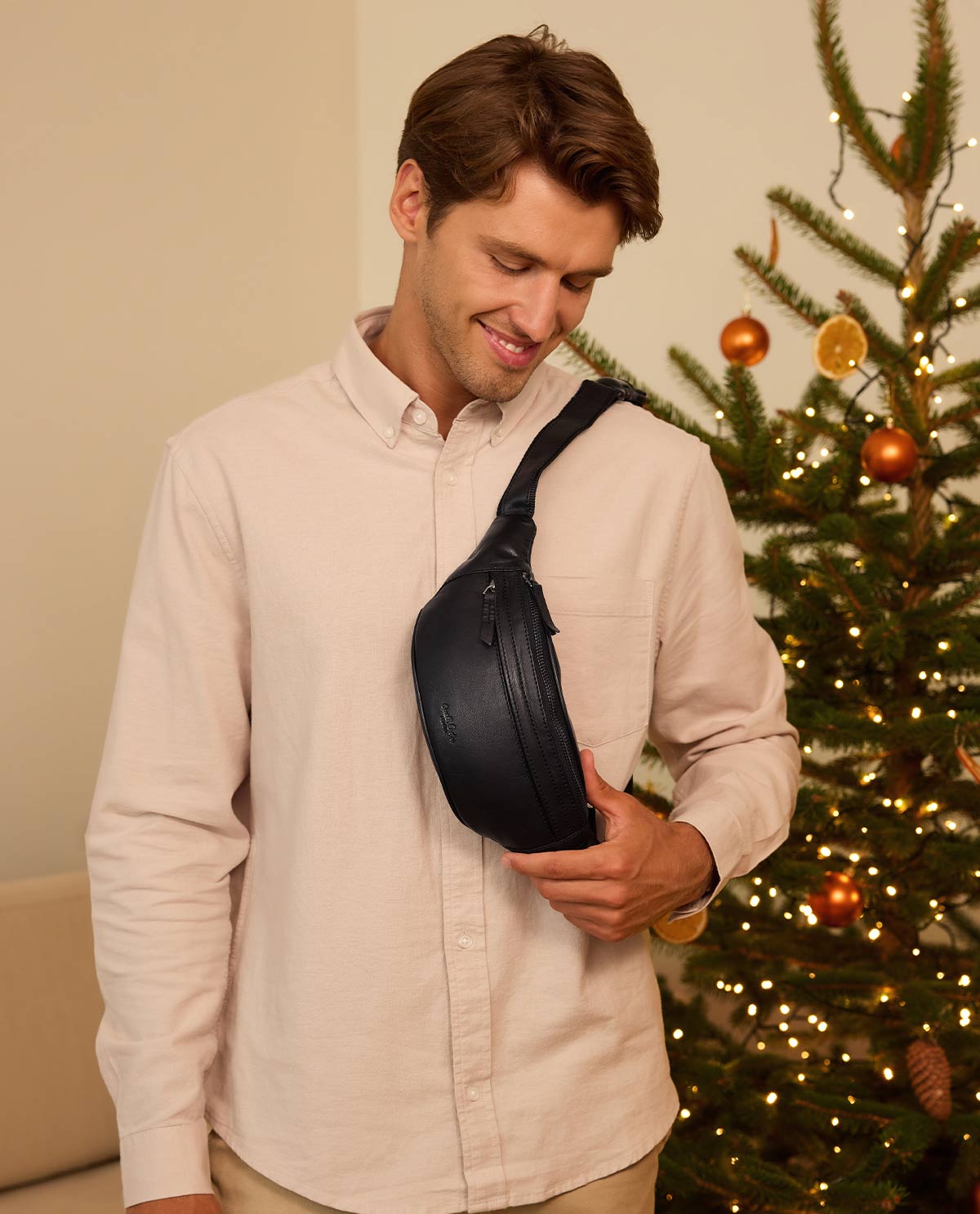 Our belt bag “Spencer” impresses with its minimalist, understated look as well as with top-notch quality and functionality. The sturdy cowhide leather ensures shape stability, while the numerous zippered compartments provide ample space for your essential items. Inspired by Berlin, “Spencer” is the perfect companion for festivals, concerts, or the nightlife hustle and bustle in the city.