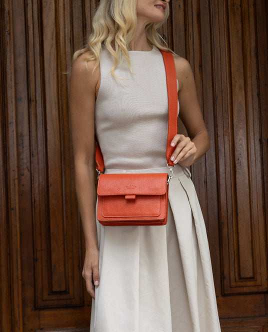 "Milo New" impresses not only with its functionality, but also with its well-thought-out details: an outer zippered compartment keeps small items within easy reach, while a hidden zippered compartment on the back protects valuables close to your body. For everyday use, you can choose between two types of closure —zipper or buckle—and for sporty days, there are practical holders for your yoga mat. The whole thing is rounded off by an engraved patch and subtle Gusti Leather embossing.