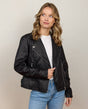 A classic with a modern twist – the "Ova" biker jacket made of black genuine leather adds a striking, stylish touch to your outfit. Whether you pair it with jeans and boots or layer it over a dress, this leather jacket makes a fashion statement. The high-quality leather feels pleasantly soft and develops a unique patina over time – just as unique as you are.