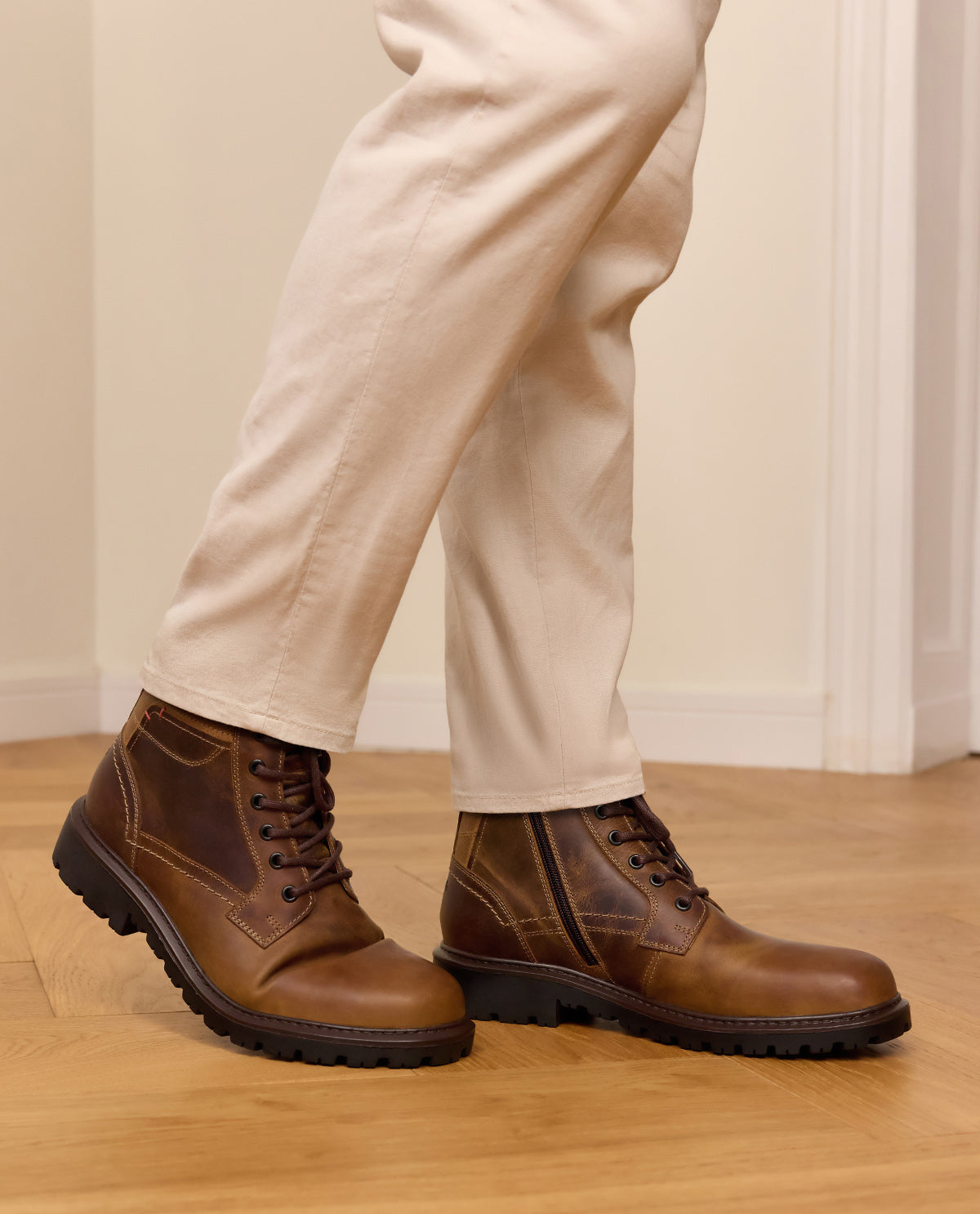 Leather shoes with zipper and laces