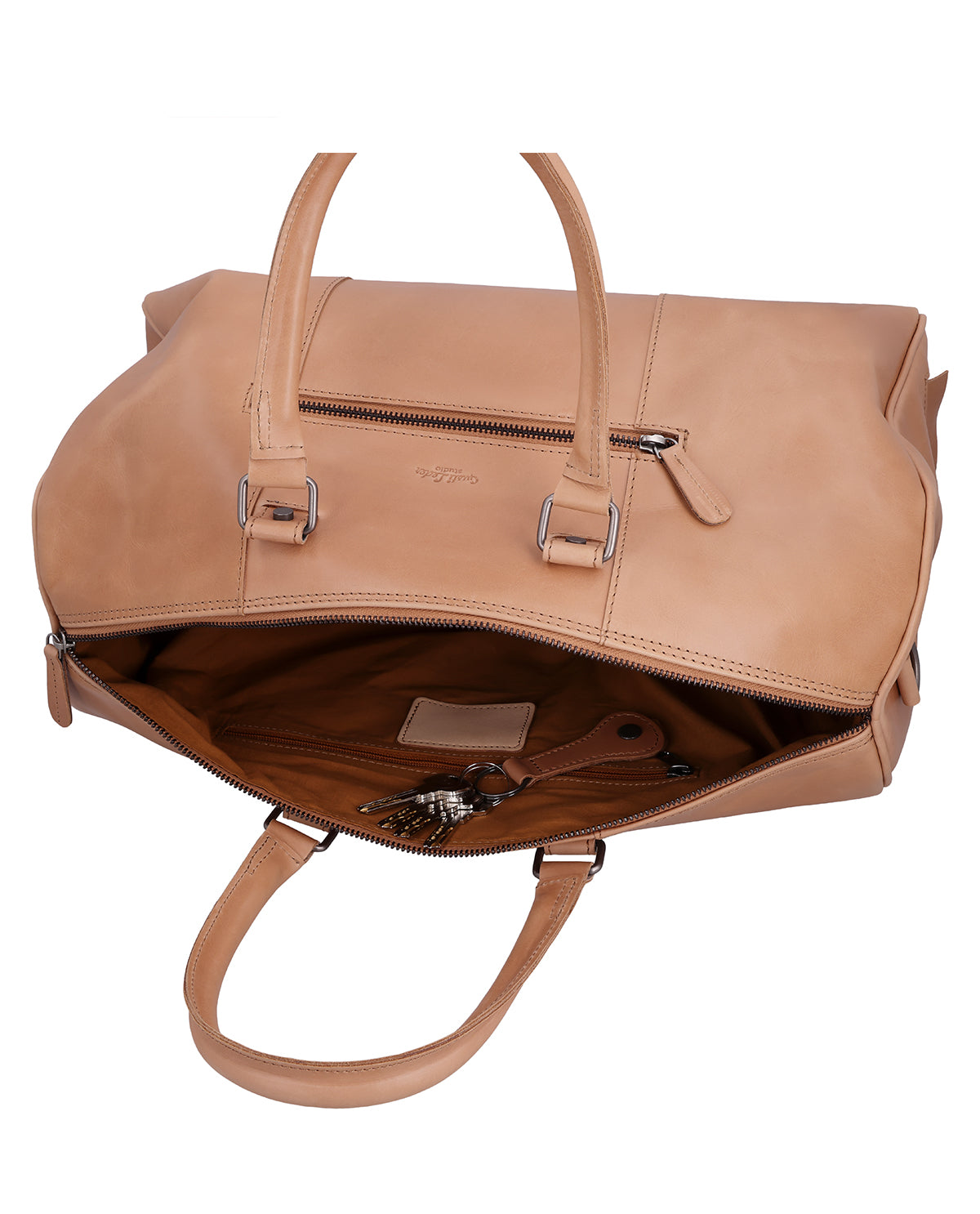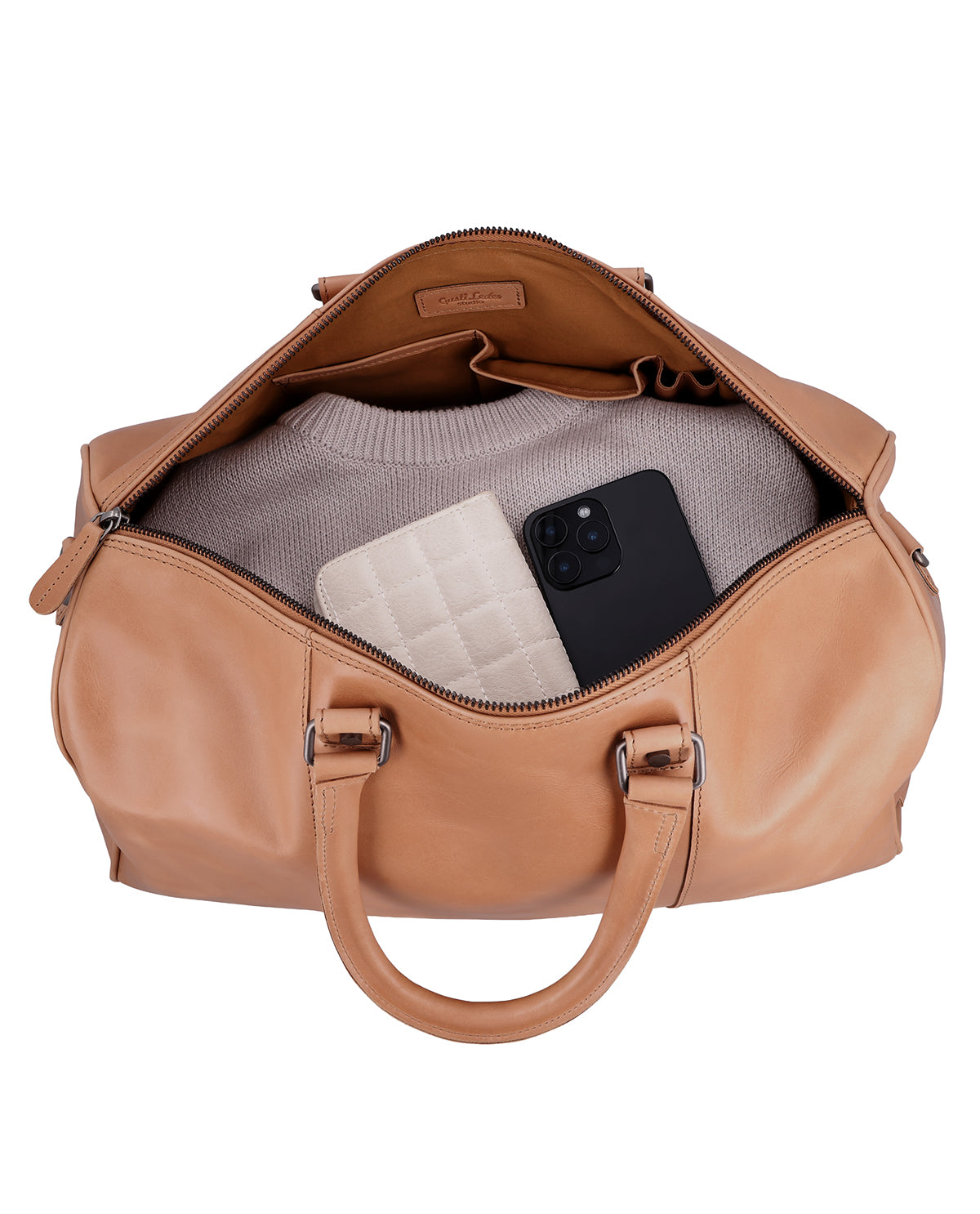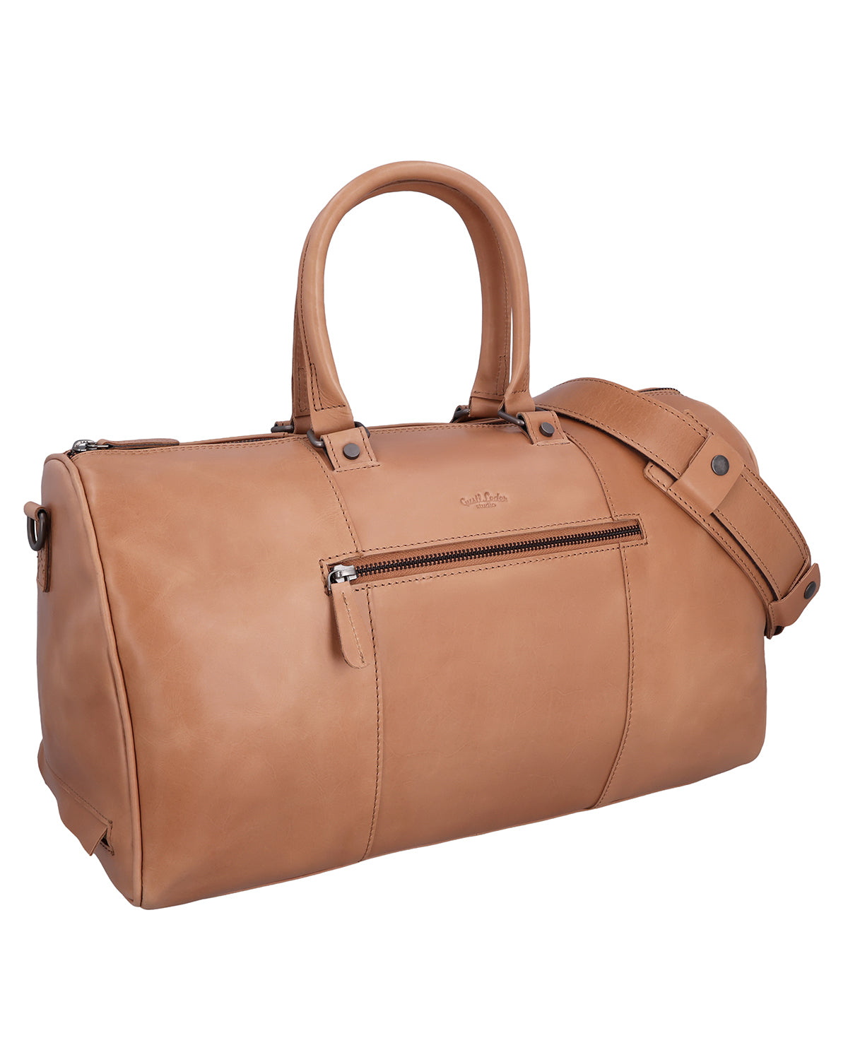 Inside and out, "Joris" offers several zippered compartments, complemented by slip pockets and pen holders for structured organization. The long shoulder strap is adjustable and removable, and a removable shoulder pad ensures comfortable carrying on longer journeys. A sturdy metal zipper closes the bag securely, while an engraving patch offers space for personalization. The Gusti logo on the inside and outside rounds off the leather travel bag harmoniously. "Joris" is the ideal choice for anyone looking for a travel bag that combines function, comfort, and durable leather.