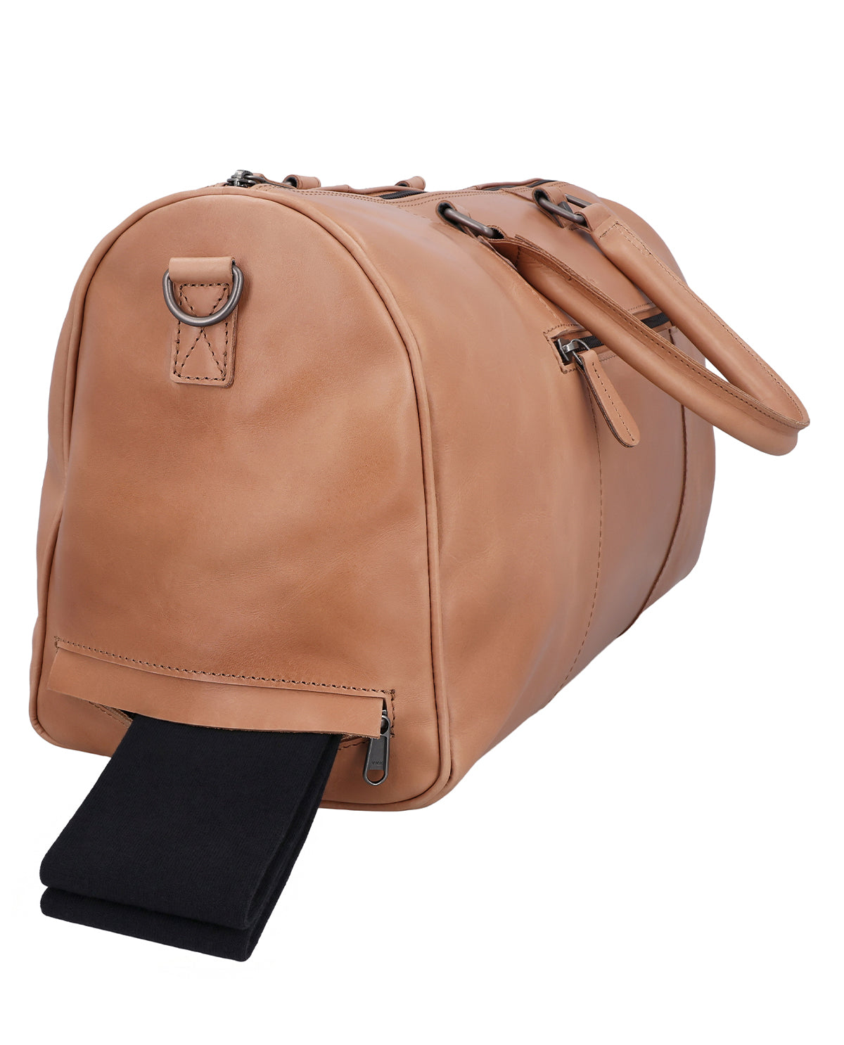 The brown leather "Joris" travel bag is designed for men and women who want to stay organized when on the go. As a high-quality leather travel bag, it combines classic design with smart extras that really count when traveling. A hidden AirTag compartment provides additional security, while a removable key ring keeps your most important items within easy reach. The separate wet compartment with water-repellent lining is particularly practical – ideal for storing worn clothing separately. "Joris" is a leather bag that keeps things tidy and noticeably reduces your workload when you're on the go.