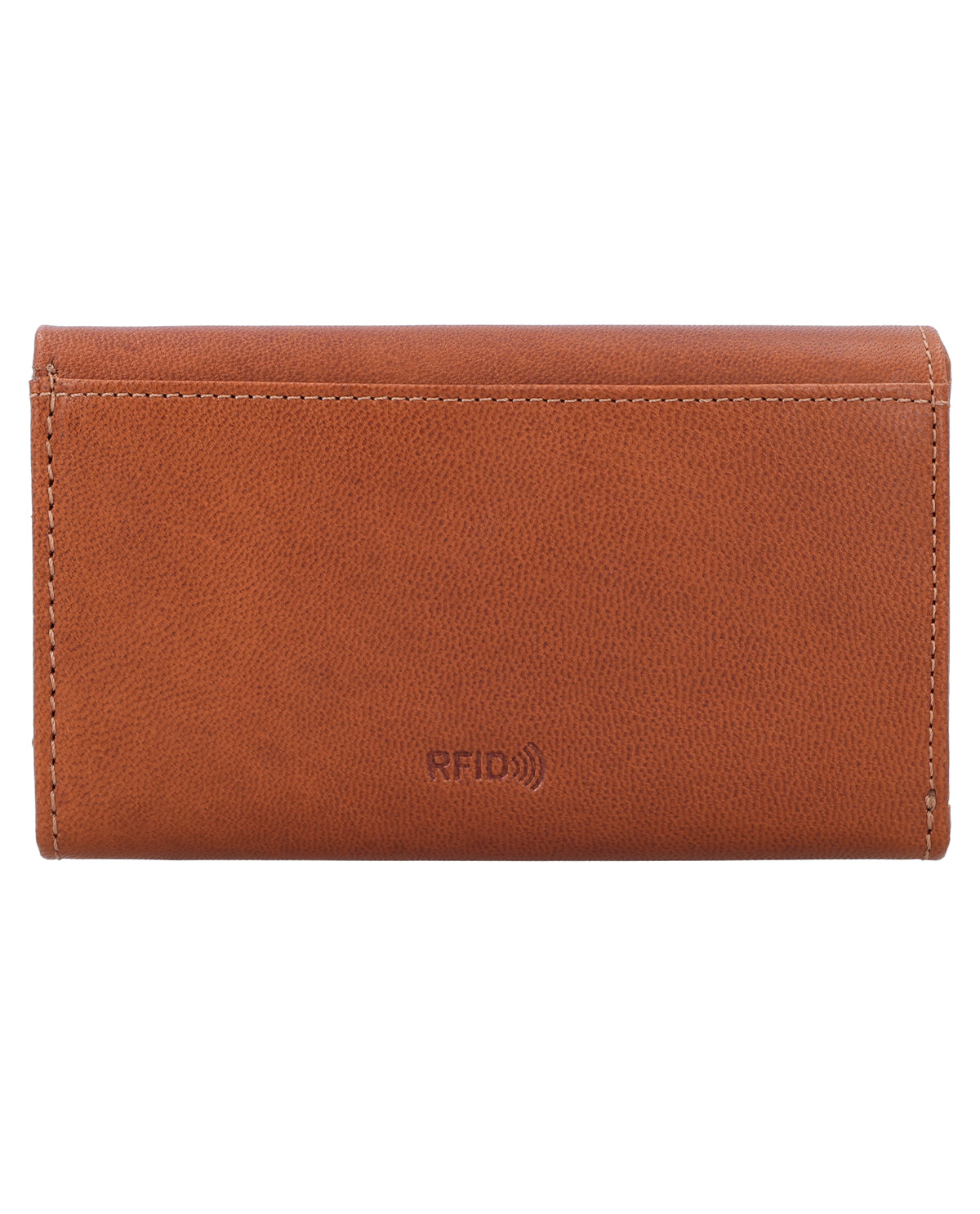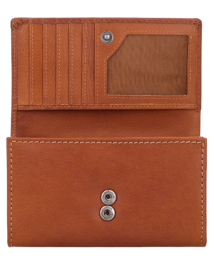 With our "Gemma" wallet, you have everything you need: cards, bills, change, and tickets all have their own place. The two coin compartments can be closed with a zipper . There is also an extra coin compartment for a single coin – ideal if you want to have a suitable coin quickly to hand. "Gemma" has space for at least five cards, and we also offer a card slot with a transparent window for your ID card, for example. Your bills are safely stored in two separate compartments. Thanks to integrated RFID protection, your cards are also reliably protected against unwanted scanning. The rest of the wallet is held together by a snap fastener. This allows you to quickly access your money, but it is still protected from falling out. The wallet is made of sturdy cowhide leather, making it a true everyday hero: perfect for frequent shoppers and those who want to become one!