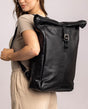 Our “Bendik” roll-top backpack is the perfect companion, no matter if you’re going to school, uni or work. He’ll win you over with his flexibility, comfort, and space. This sturdy, classic daypack made of black leather stands out from the crowd with its trendy roll top—a look that you just can’t ignore at the moment.
