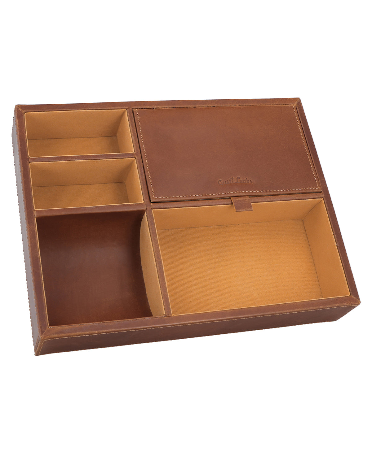 With "Bianka", you bring elegance and structure to your desk. Made from high-quality leather with a smooth surface, this organizer combines functionality and timeless design. The various open compartments in different sizes offer you the possibility to neatly sort pens, sticky notes, glasses, or other personal items. This keeps your workspace tidy, while the noble leather gives your office a warm, luxurious touch – perfect for anyone who wants to combine organization with style.