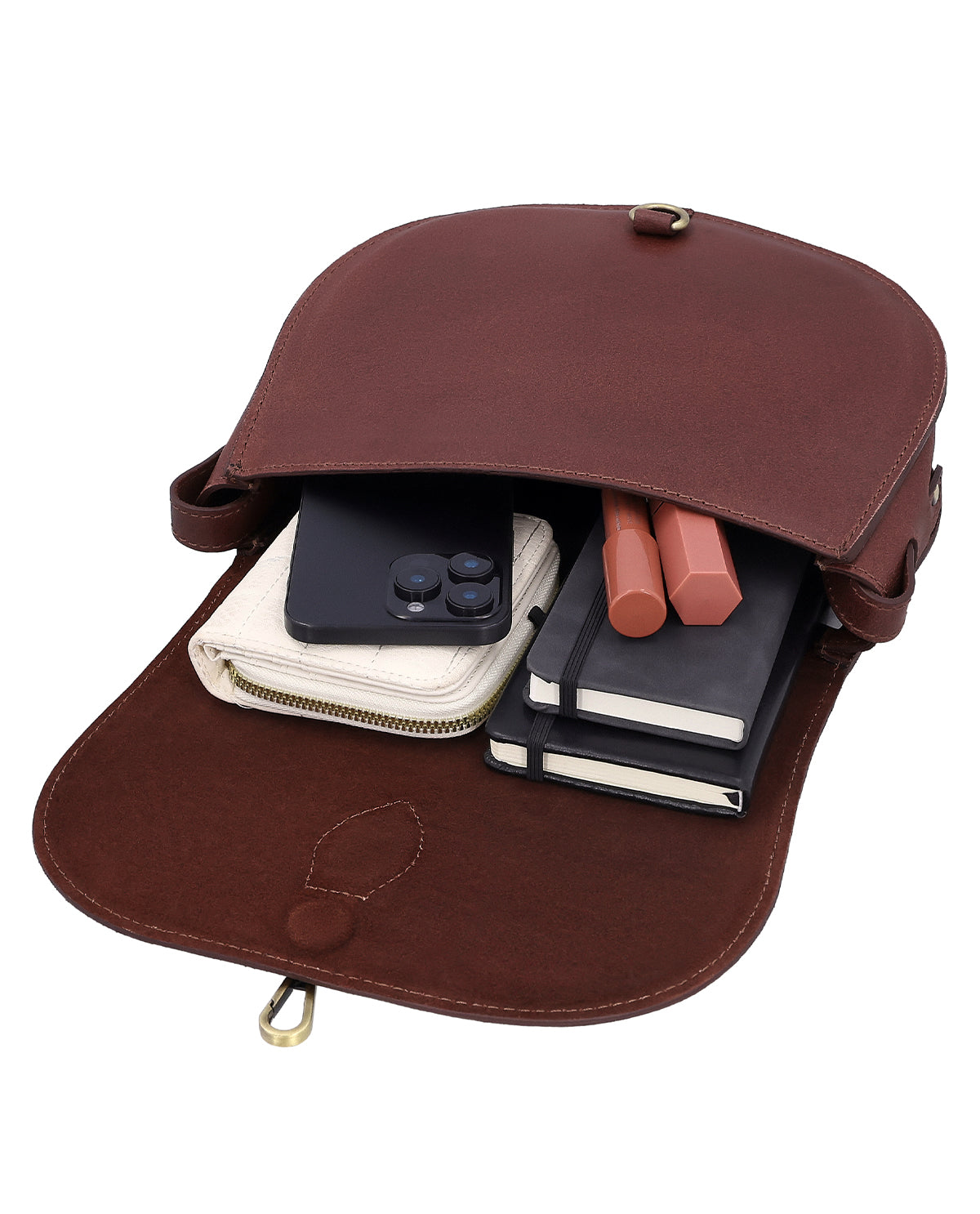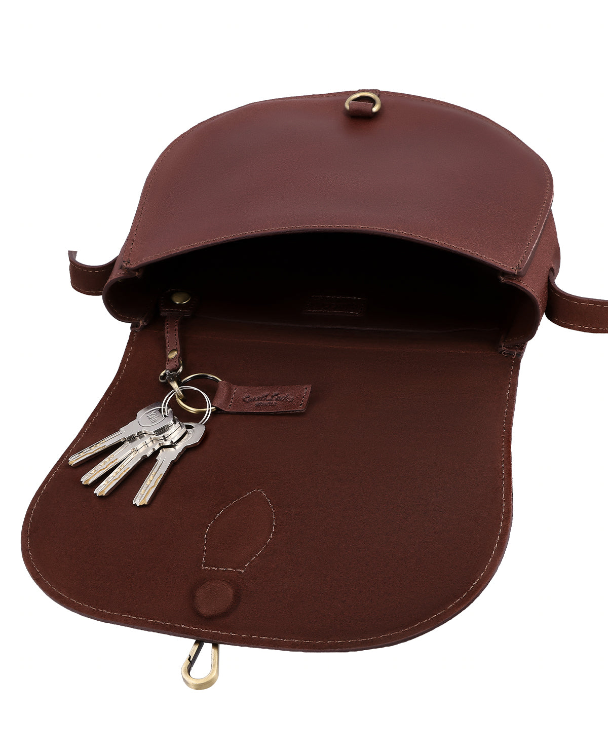 No matter when or where you need to go, "Wiebke" will always be a faithful companion. The high-quality cowhide leather makes it extremely durable without looking clunky or awkward. Even in the most varied weather conditions, "Wiebke" won't let you down. The adjustable shoulder strap adapts to all your situations and won't let you down when it comes to comfort. Inside, a practical key ring holder ensures that you can find your keys immediately, while a discreetly integrated secret AirTag compartment gives you additional security. An engraving patch is also integrated for a personal touch – perfect if you want to customize "Wiebke."
