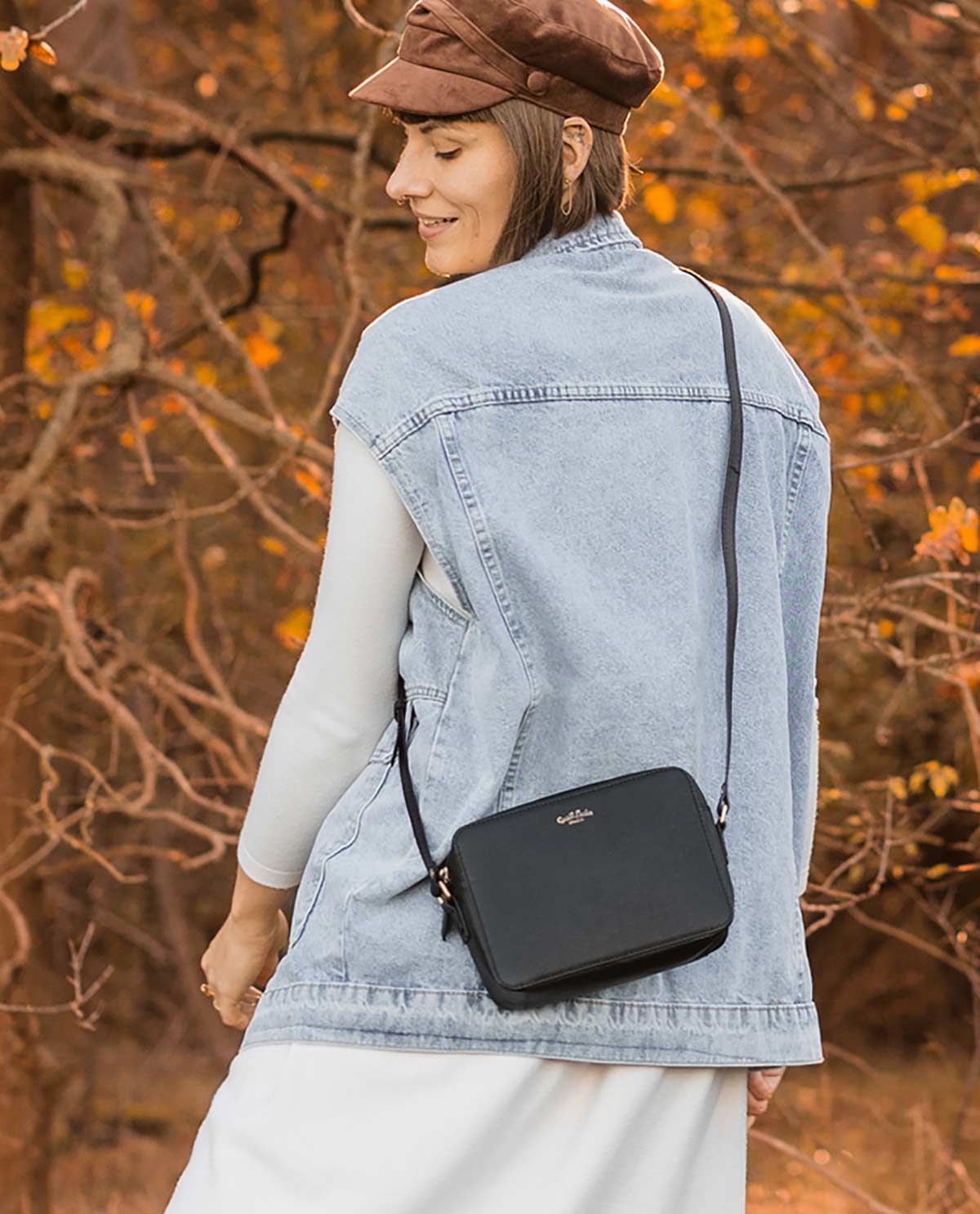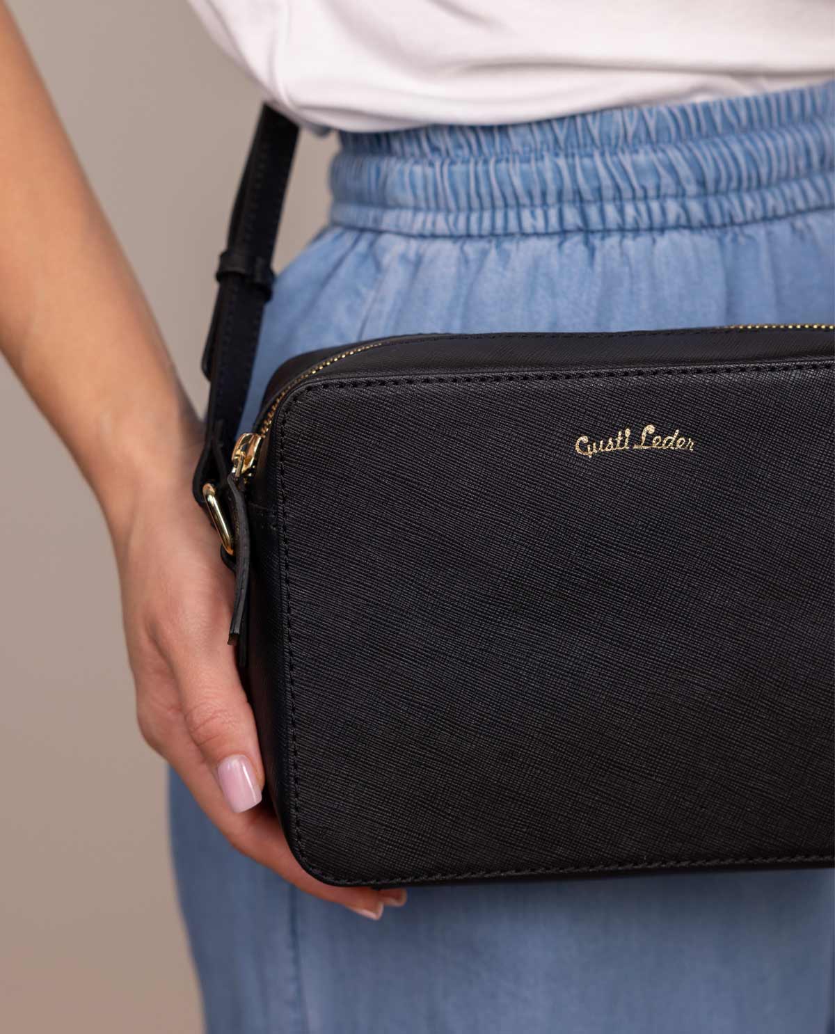 Our stylish handbag “Almina” looks good with any outfit. Our chic crossbody bag will win you over with its modern design. This petite handbag is the perfect companion when you’re browsing the shops. “Almina” is a simple, timeless, elegant bag and the perfect accessory for evenings at the theatre, the opera, or when out for dinner with friends.