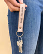 The elegant keychain "Shelton" is available in many different colors – your favorite color is guaranteed to be among them. On the keyring, you can attach as many keys and carabiners as you like. Thanks to the engraving, the keychain gains a very personal touch, so your friend not only receives a practical but also a unique gift. An ideal accessory for every handbag or backpack interior!