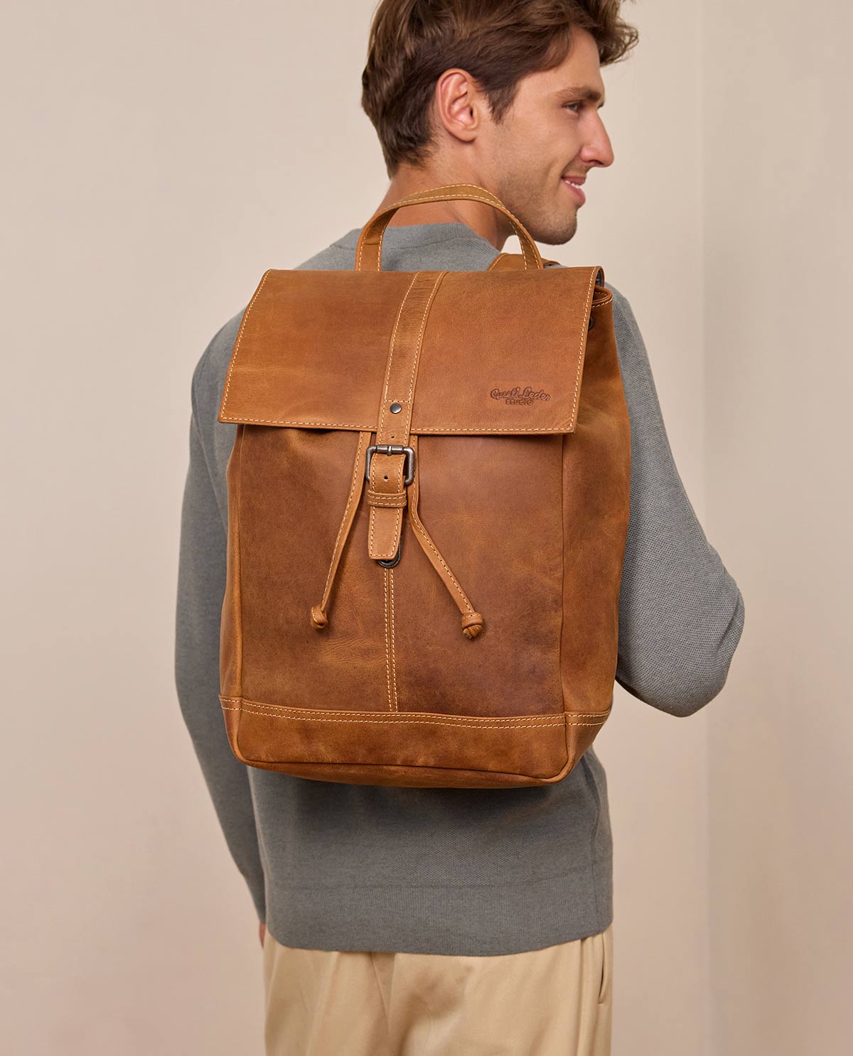 “Jaime” is a classic rucksack made of sturdy leather that will win you over with its timeless design and functionality. No matter if you’re off on a spontaneous weekend trip, heading to university or the office by bike or on foot, “Jaime” is the perfect companion for every situation. This charismatic backpack is a true fashion statement and a must-have piece.