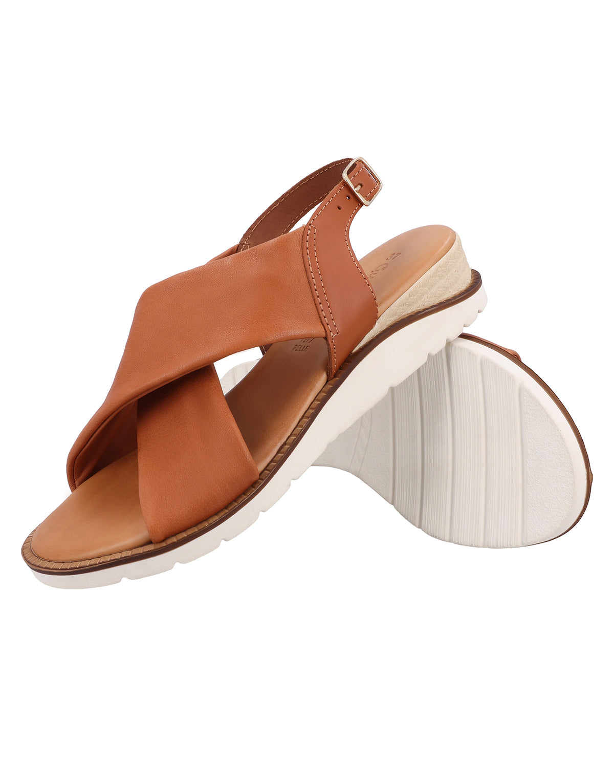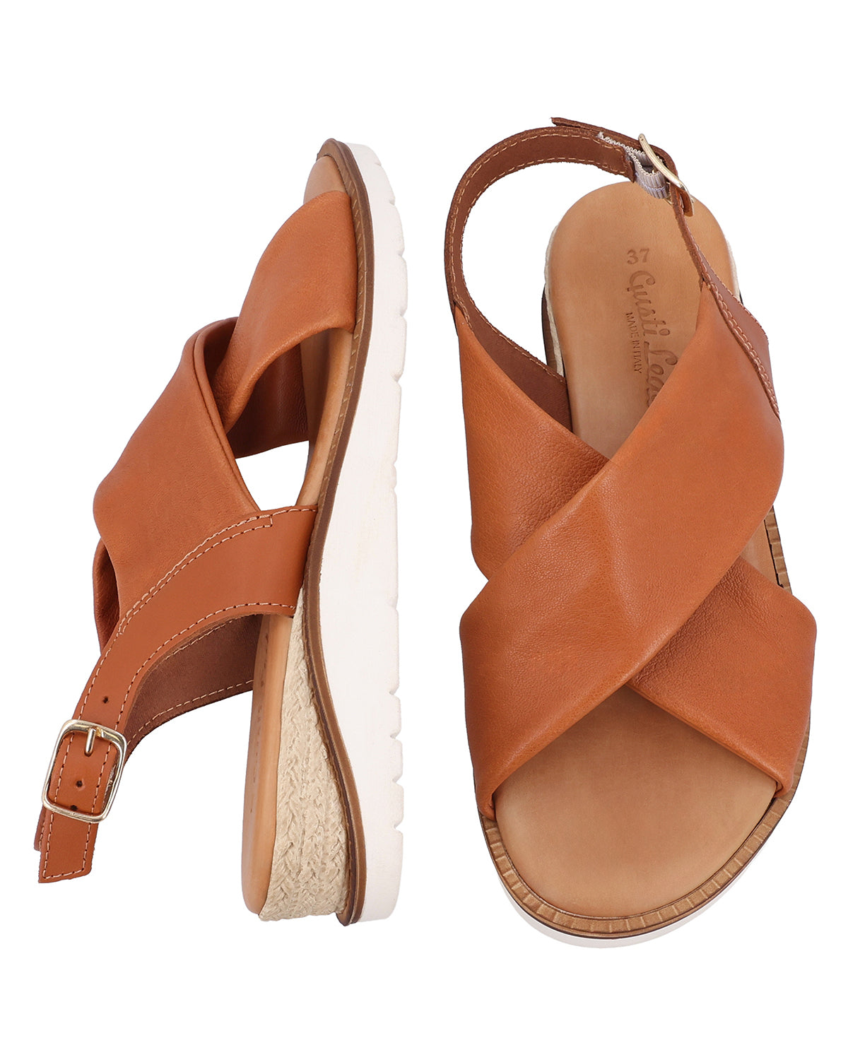 With our “Wibke” women’s sandal, you can bring a touch of carefree vacation vibes into your everyday life. The high-quality brown Cowhide leather of the wide crisscross straps gently wraps around your foot, while the soft leather lining ensures a particularly comfortable fit. Thanks to the adjustable strap with a delicate buckle at the heel, the shoe can be perfectly adapted to the shape of your foot and offers a secure hold with every step.