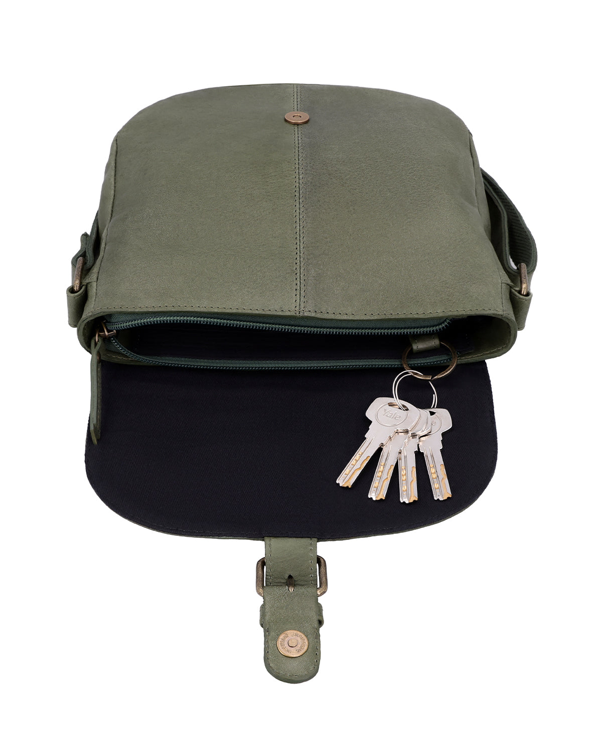 "Candice"impresses with its harmonious design and offers a surprising amount of storage space. In addition to your wallet, smartphone, and keys, it even fits an e-book reader or a classic paperback. The zippered compartment on the back keeps your most important belongings close to your body, while the outer zippered compartment allows quick access to frequently used items. The magnetic closure in a buckle design securely fastens the main compartment. The down-to-earth, chic vintage look makes "Candice" the perfect companion for walks, city trips, and coffee dates. With every use, it proves to be a faithful companion, manufactured under fair, sustainable conditions – for style, function, and conscious action.