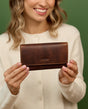 Discover our high-quality women's wallet "Angelique" made of brown leather – an elegant companion that perfectly combines design and functionality. Inspired by the urban Berlin flair, it is ideal for your everyday life, whether shopping in the city, at the café, or traveling. The genuine, durable leather ensures a noble look and a pleasant feel that becomes even more beautiful over time. "Angelique" stands for style, quality, and organization – everything you expect from a modern wallet.