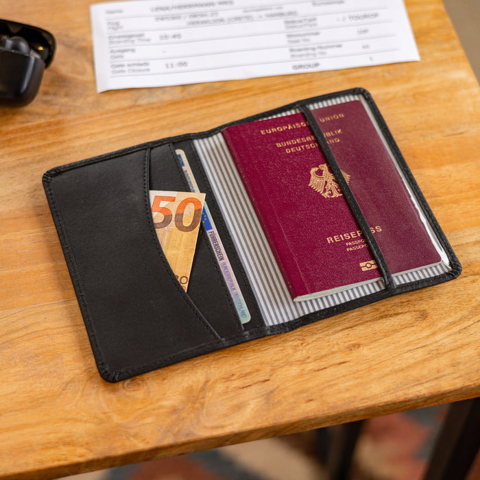 Jeśli wszystko masz w jednym miejscu, bardzo łatwo wszystko stracić. Dlatego zostaw kilka wartościowych rzeczy w hotelu: zdeponuj je w bezpiecznym miejscu, np. w sejfie hotelowym lub w podwójnym dnie walizki. Etui na paszport z kieszonką na karty dodatkowo chroni Twoje dokumenty i trzyma je razem. Podczas podróży powinieneś część rzeczy schować np. do torby na pas lub plecaka, a drugą część do wewnętrznej kieszeni kurtki lub przedniej kieszeni spodni. Dodatkowa wskazówka: Przygotuj sobie wcześniej pieniądze na drobne wydatki. Dzięki temu nie musisz ciągle wyciągać portfela i dajesz złodziejom mniej okazji.