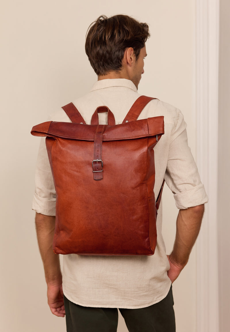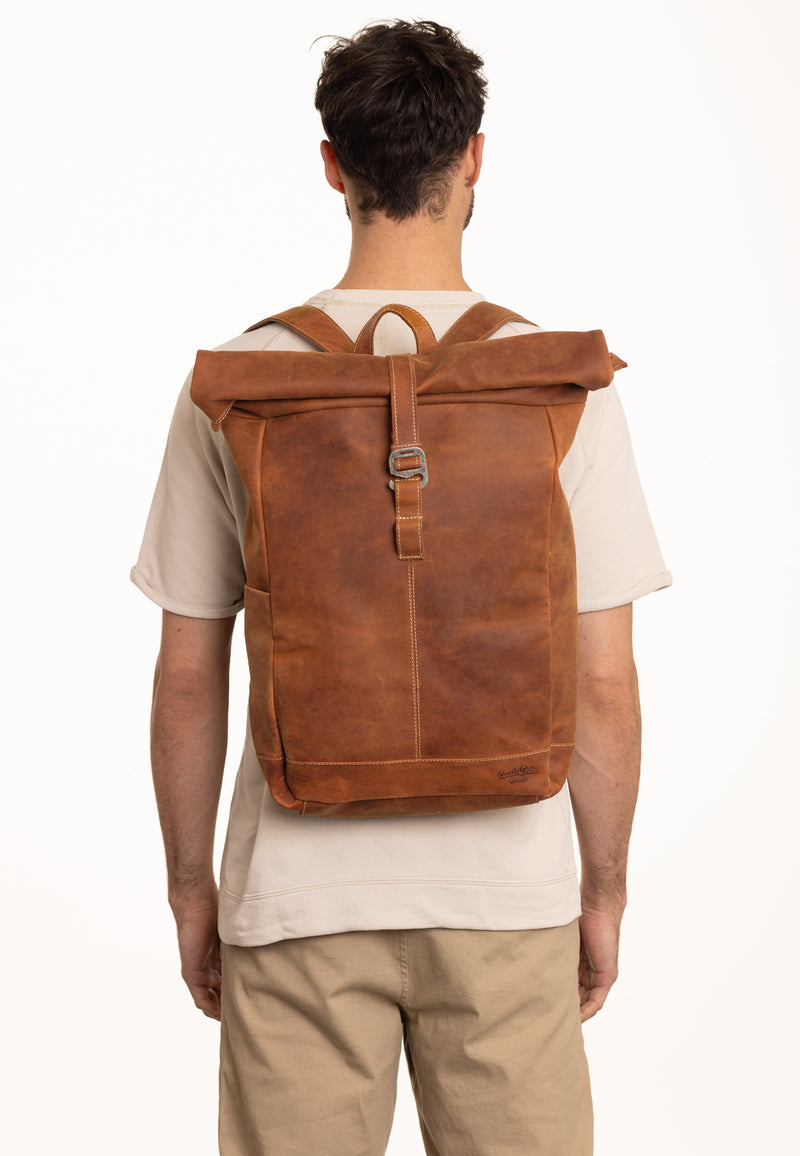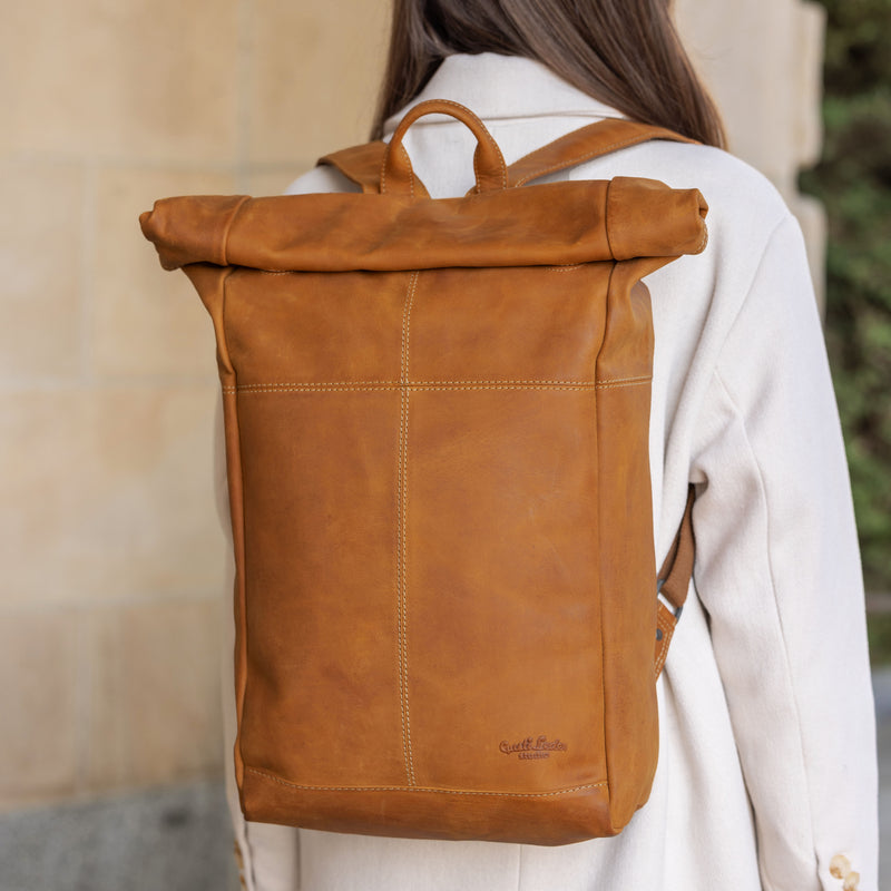 Nasz plecak typu rolltop „Valja”, wykonany z wysokiej jakości skóry koziej, zachwyca szykownym urokiem vintage i stanowi idealny, modny dodatek. Zachowuje minimalistyczną formę na zewnątrz, jednocześnie oferując zaskakująco dużo miejsca wewnątrz. Wyposażony w ukrytą kieszeń boczną, przegrodę na laptopa oraz przestrzeń na notatnik, portfel, piórnik skórzany i wszystkie codzienne niezbędniki.