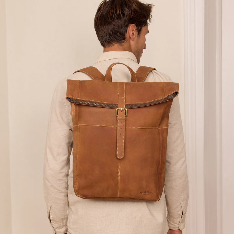 Podczas tworzenia naszego klasycznego plecaka skórzanego typu rolltop „Henning” szczególną uwagę poświęciliśmy formie i designowi. Ten model oferuje mnóstwo miejsca na wszystko, czego potrzebujesz podczas intensywnego dnia w biurze lub na uczelni. Posiada pojemną komorę główną oraz zewnętrzną kieszeń boczną na suwak, dzięki której telefon lub portfel masz zawsze pod ręką. Ten starannie zaprojektowany plecak w stylu vintage to wyjątkowy dodatek, który doskonale podkreśli Twój styl.