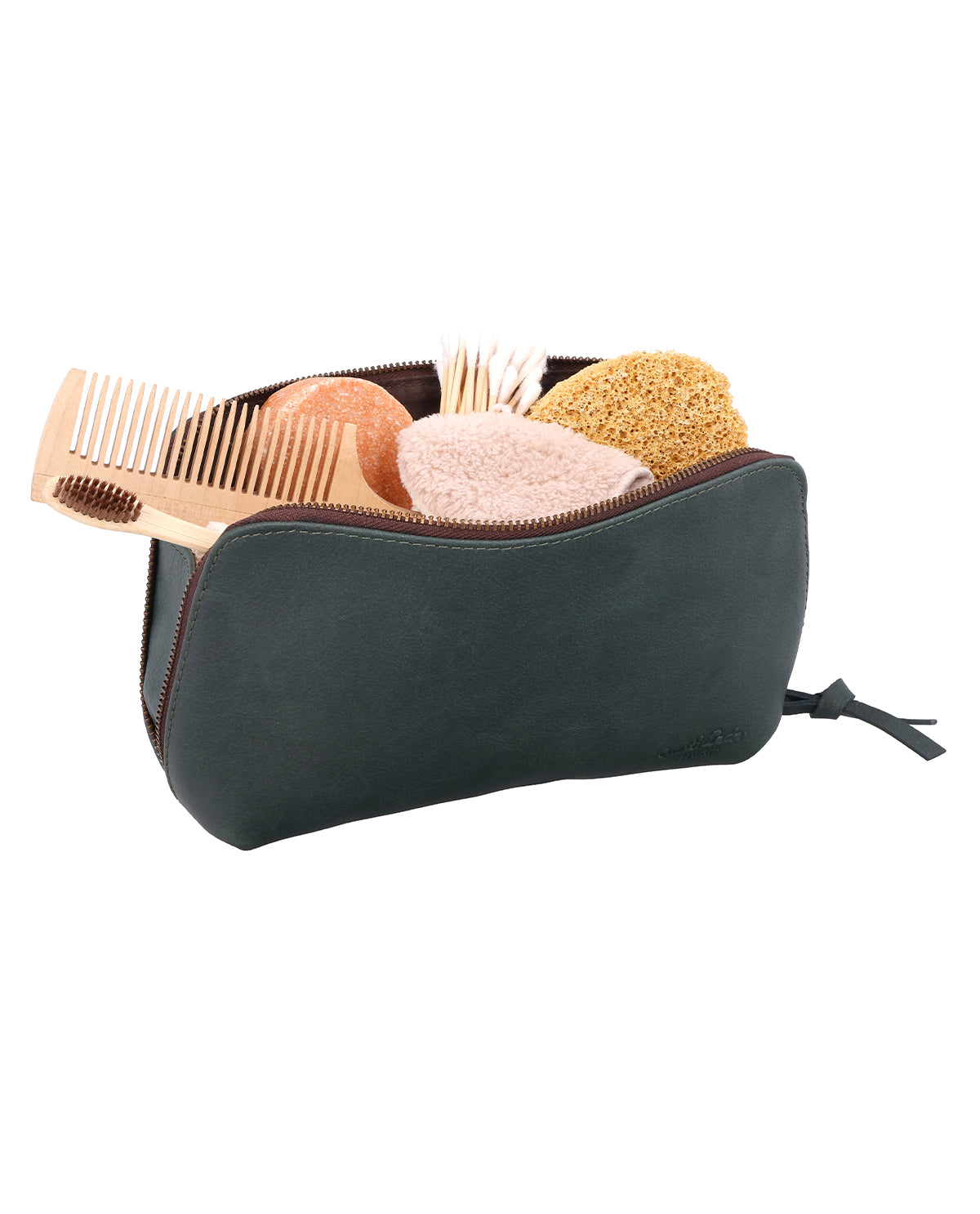 Wykonana z wysokiej jakości wytrzymałej skóry „Eli” oferuje idealną przestrzeń na wszystkie twoje artykuły higieniczne. Przestronna komora główna wewnątrz zapewnia wystarczająco dużo miejsca na dezodorant, szampon, odżywkę, pastę do zębów, szczoteczkę i wiele innych rzeczy. Dopełnieniem projektu „Eli” jest dopasowany zamek błyskawiczny. Dzięki temu wszystko pozostaje na swoim miejscu i jest optymalnie schowane.