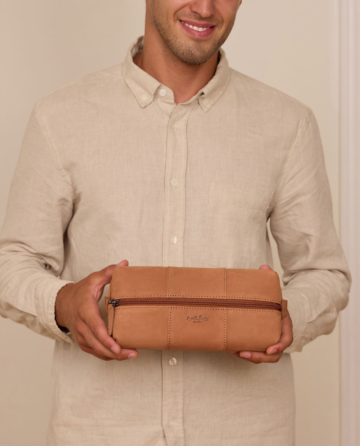 Kosmetyczka „Marcin” zachwyca starannym wykonaniem oraz wysokiej jakości skórą, co zapewnia trwałość. Dzięki praktycznym wymiarom i elastycznemu wnętrzu masz wystarczająco dużo miejsca na swoje najważniejsze kosmetyki, nie ryzykując bałaganu. Dzięki swojej stonowanej elegancji „Marcin” doskonale wkomponuje się zarówno w Twoją torbę, jak i w toaletkę. Odkryj idealne połączenie funkcjonalności i designu – „Marcin” to coś więcej niż tylko kosmetyczka, to deklaracja.